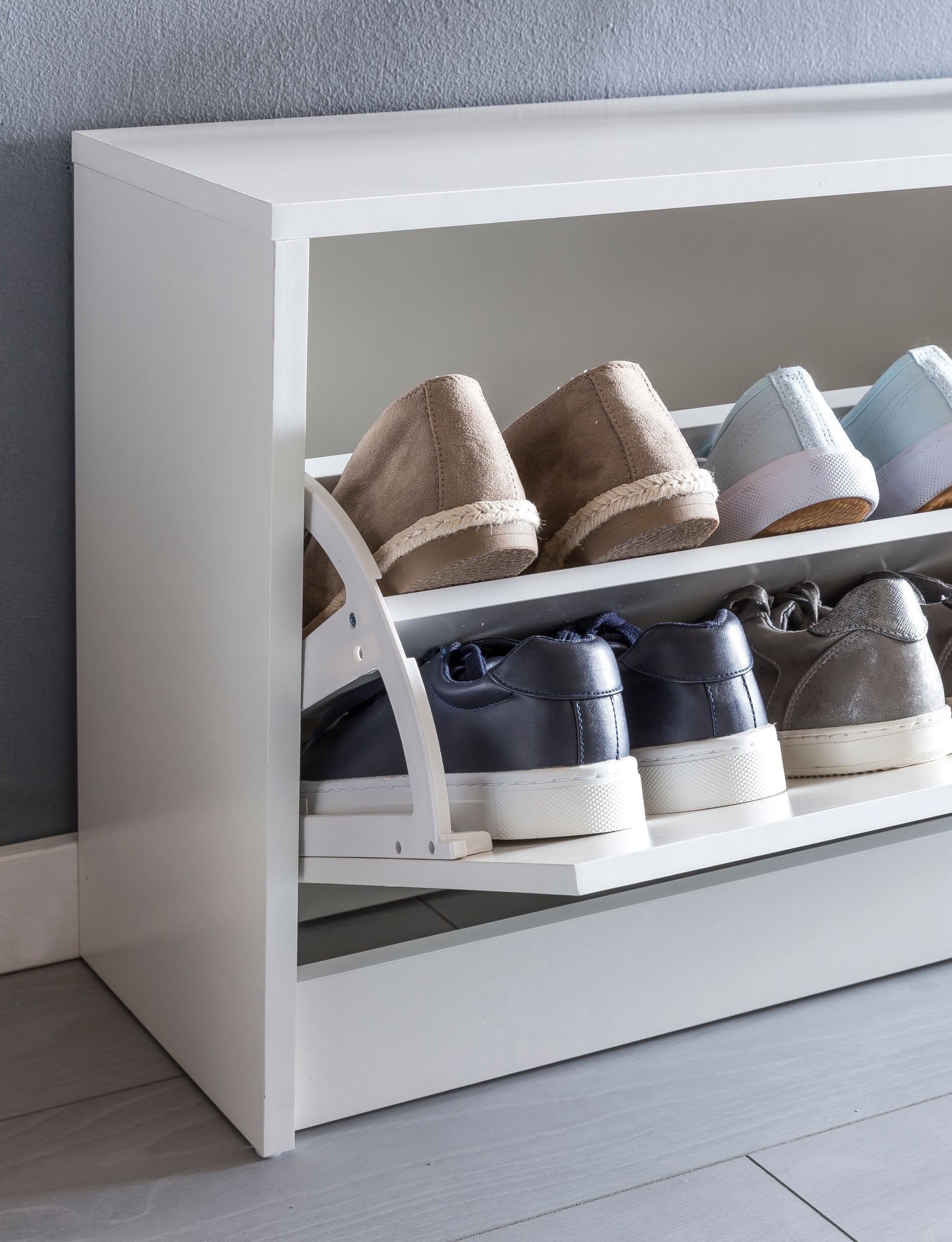 - COMPOSITION ✔ L’armoire à chaussures fermée est en panneau de particules. La surface a été revêtue d'une couche de résine mélaminée pour rendre le meuble étanche et particulièrement facile d'entretien.