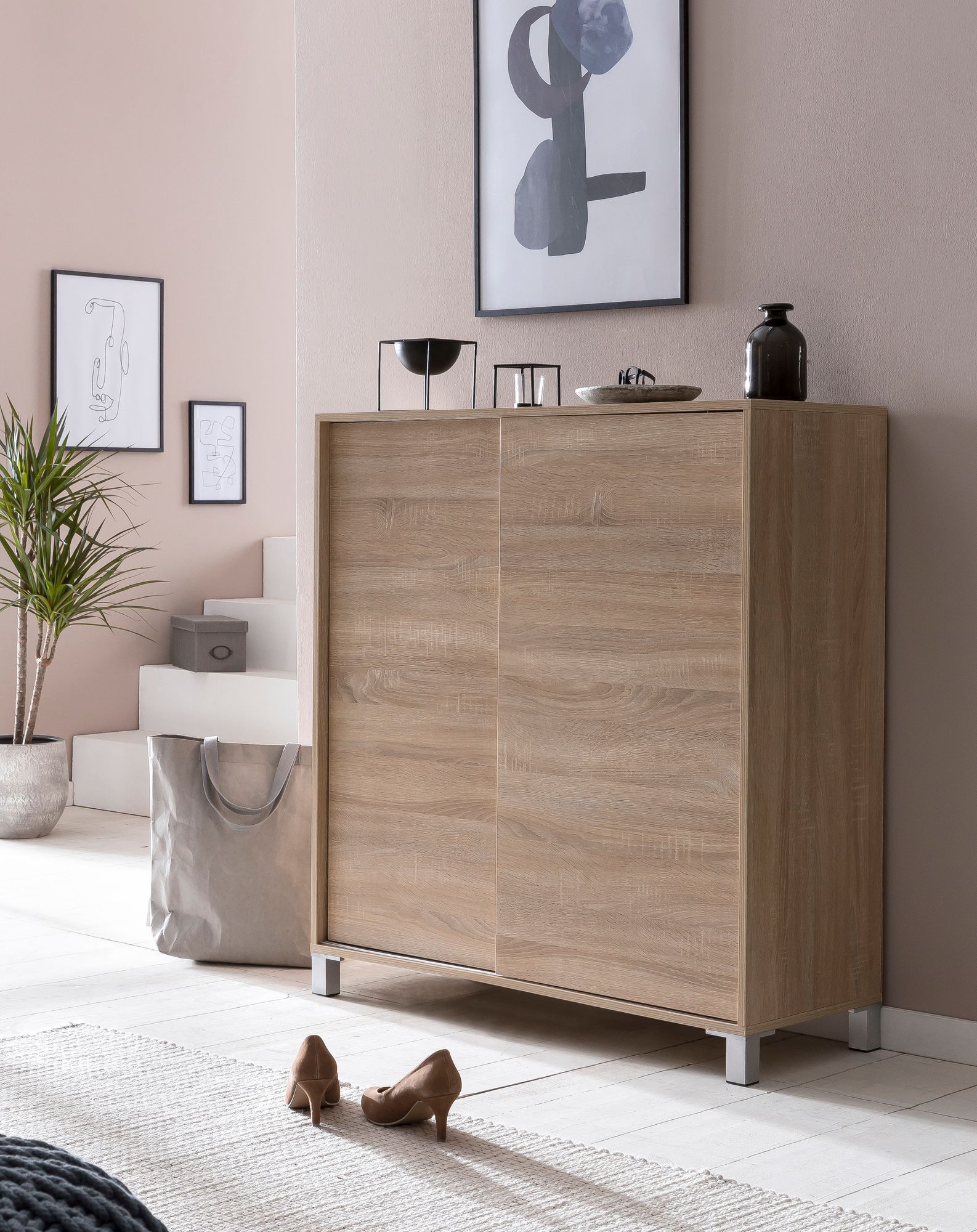 - SE SIMPLIFIER LA VIE ✔ Qui n’a jamais vécu cela ? Vous rentrez du travail et vous voulez vous déchausser rapidement pour vous jeter sur le canapé. Mais pour que les chaussures ne traînent pas dans le couloir, faites-les disparaître rapidement dans cette armoire à chaussures chic. Vos chaussures y seront soigneusement rangées à l’abri des regards grâce à des portes coulissantes pratiques.