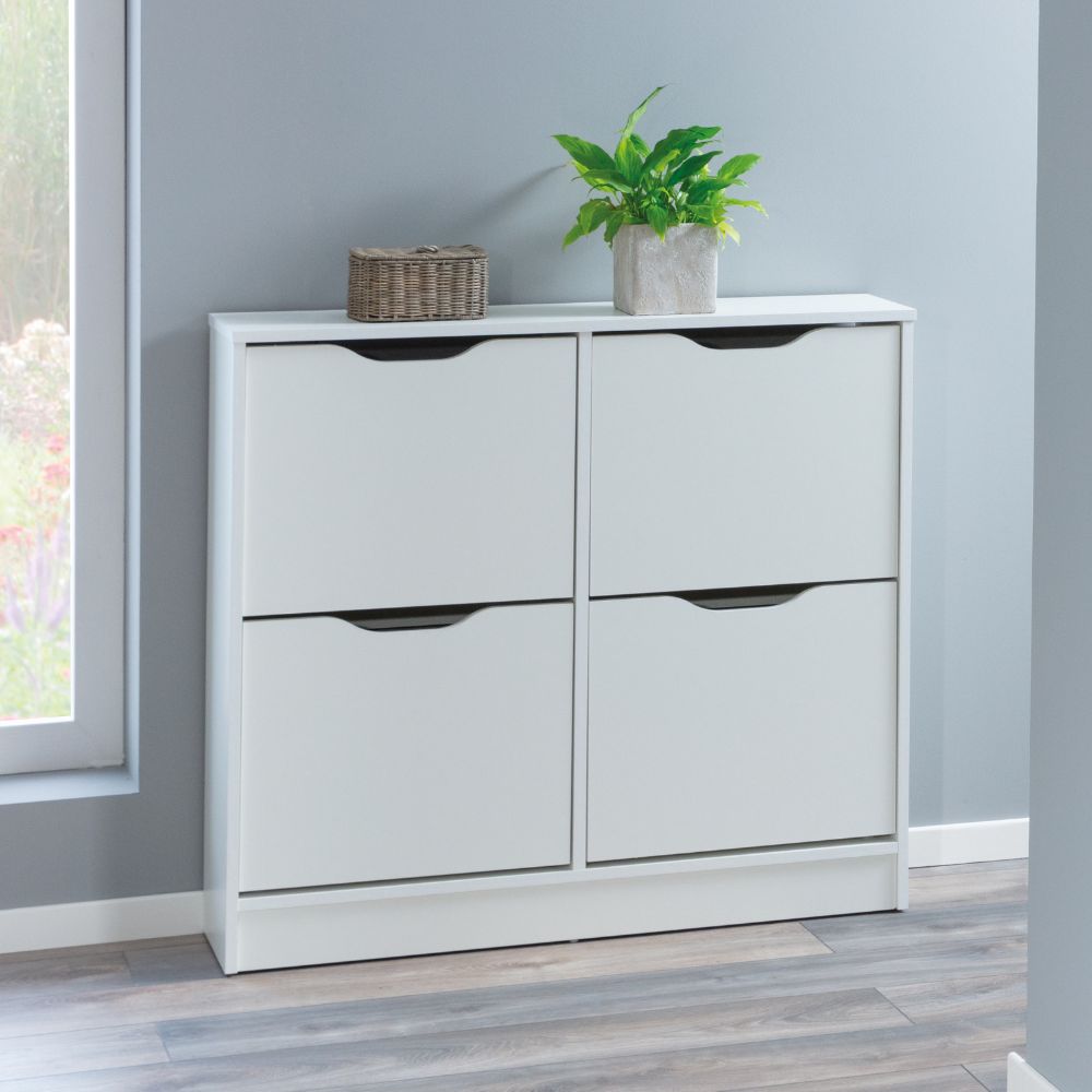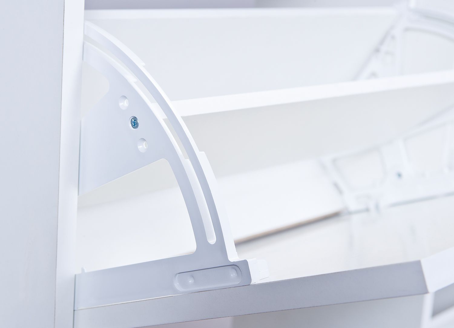 Le meuble est équipé de 4 abattants pouvant accueillir chacun environ 2 paires de chaussures.