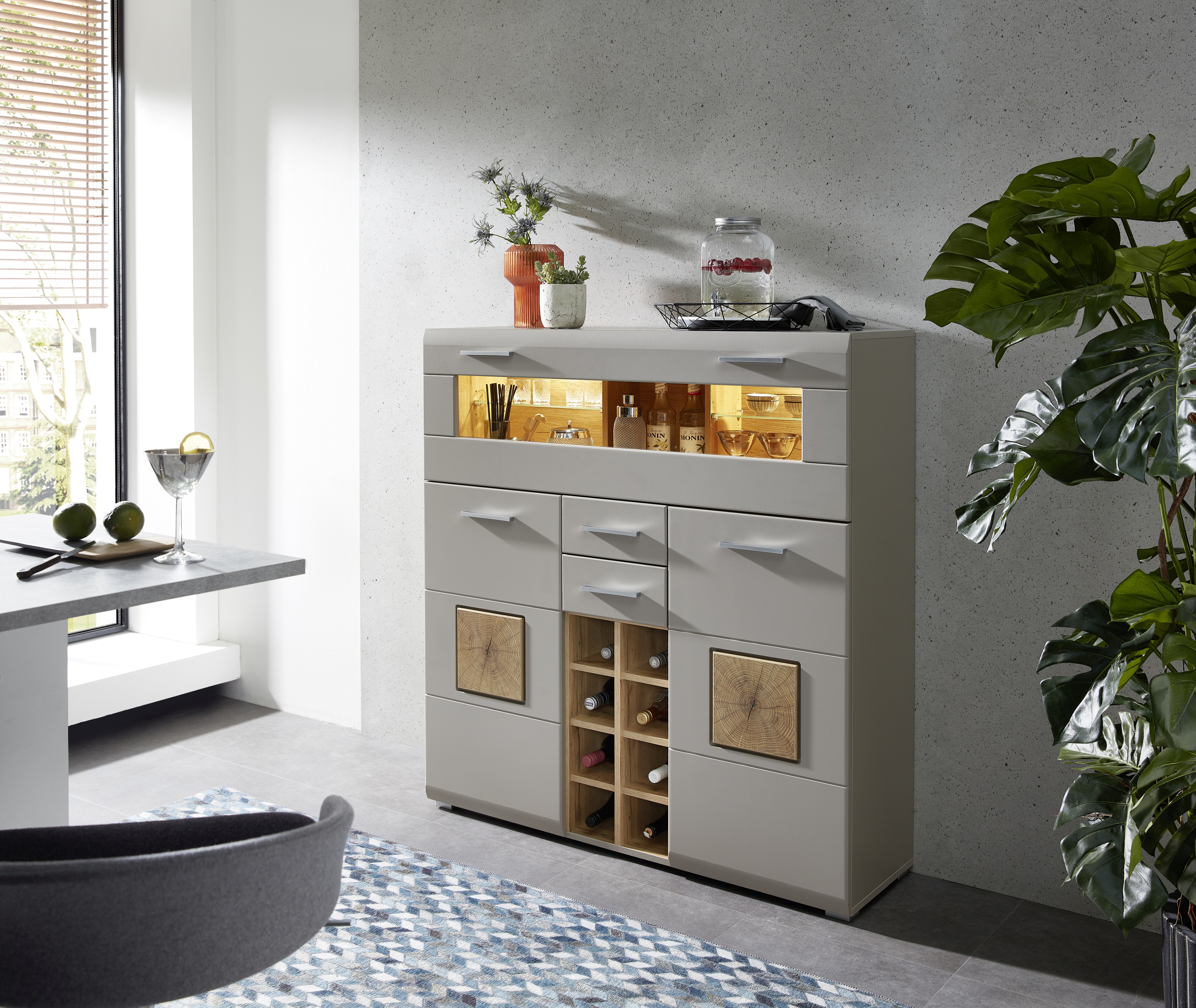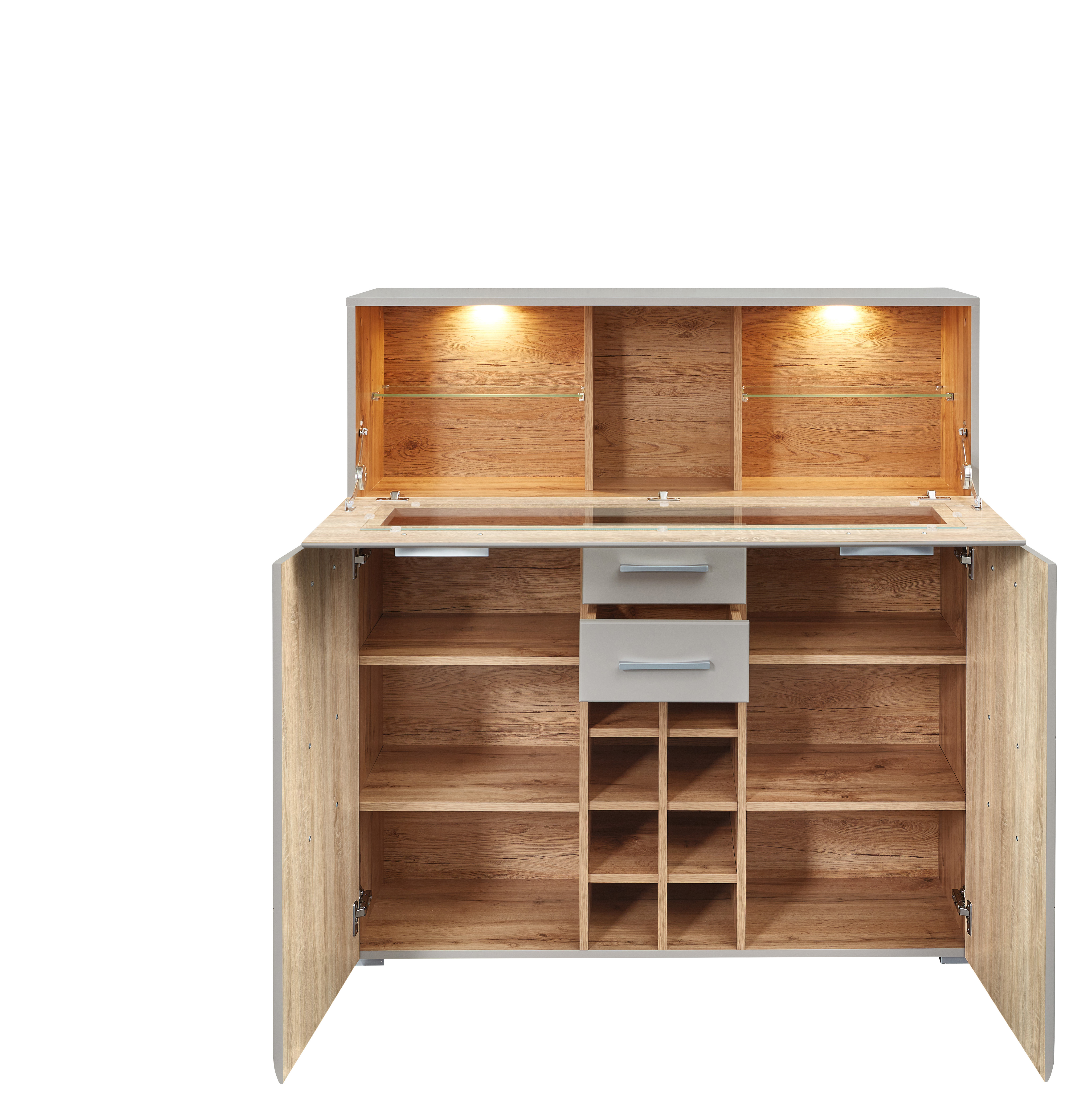 Ausstattung Kommoden Phono Büro Regal: | Abattant(s), Portes, Tiroirs, incl. éclairage |