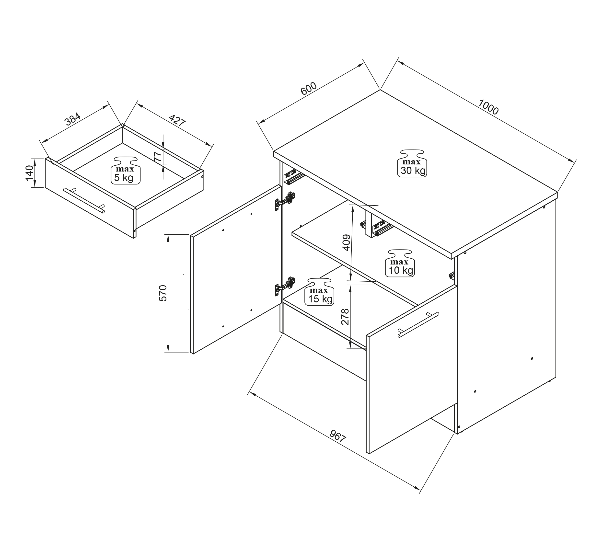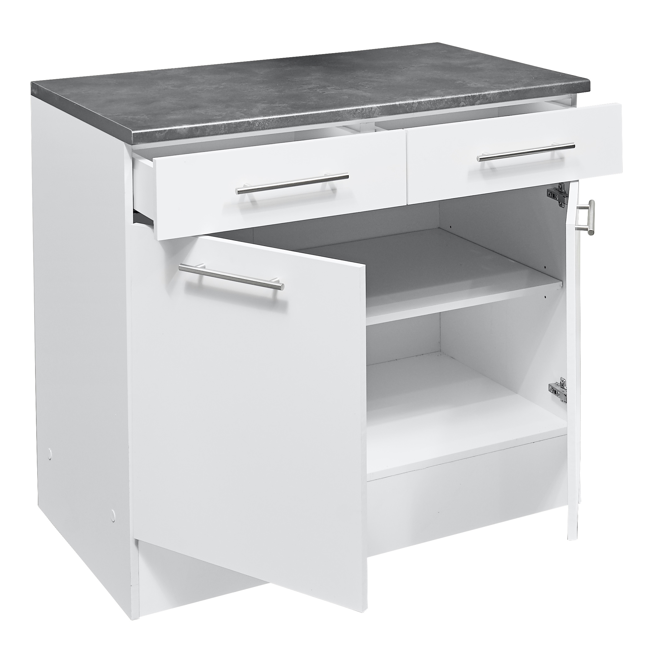 2 tiroirs avec fermeture amortie et coulisses sous tiroirs