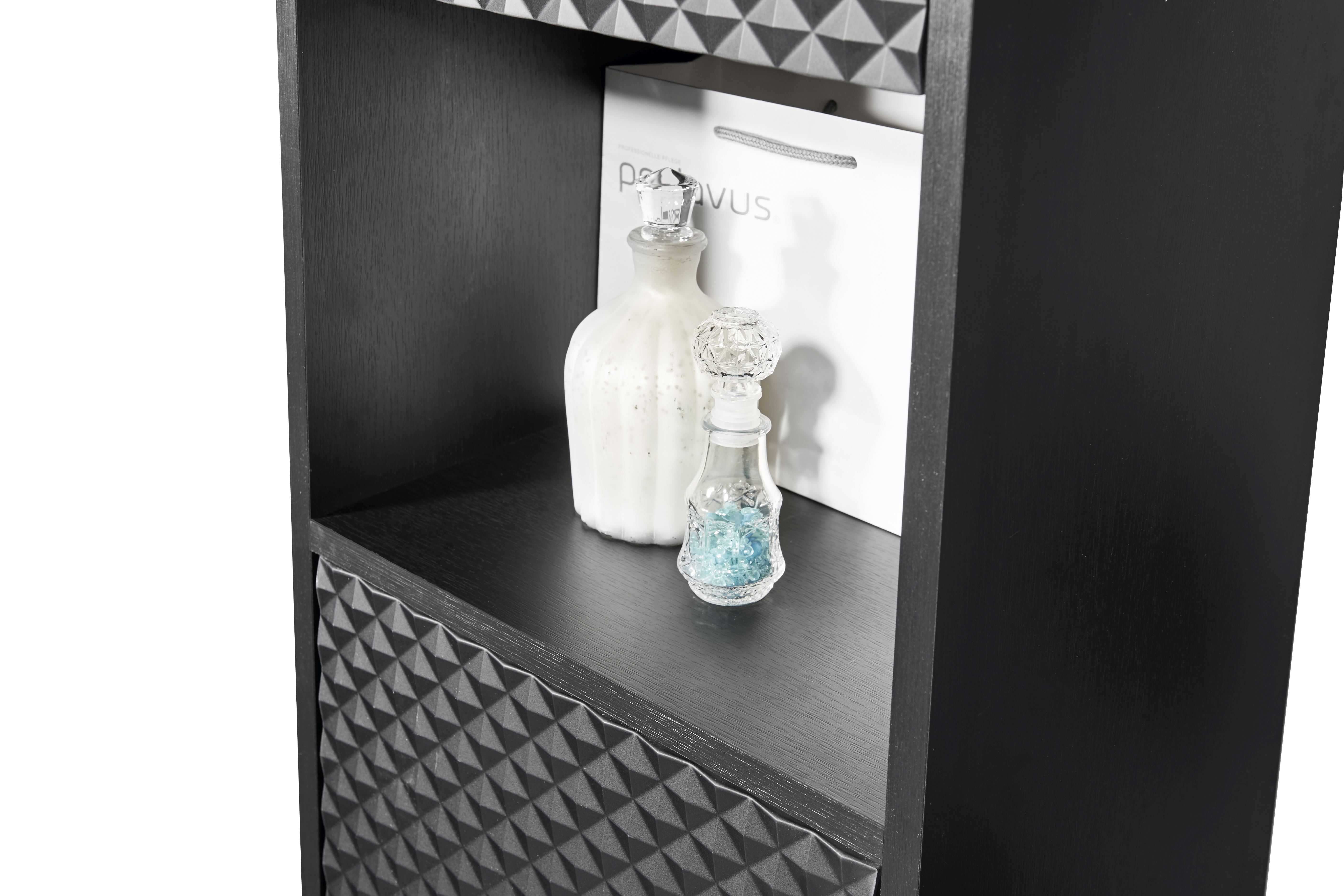 Façade : MDF (panneaux de fibres de bois de densité moyenne) thermoformé ton noir graphite, PPSM
