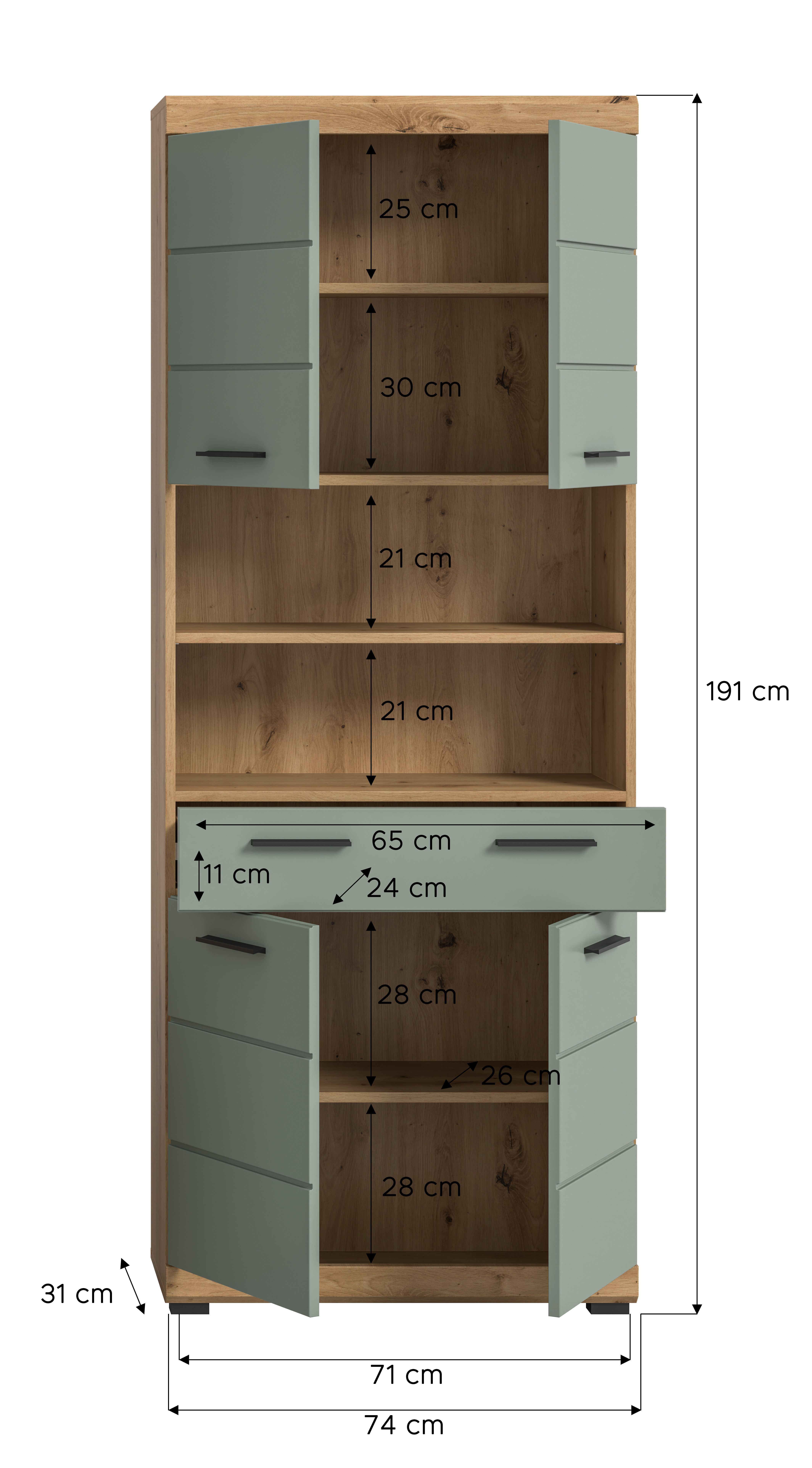| Dimensions : | L/H/P env. 74/191/31 cm | ||