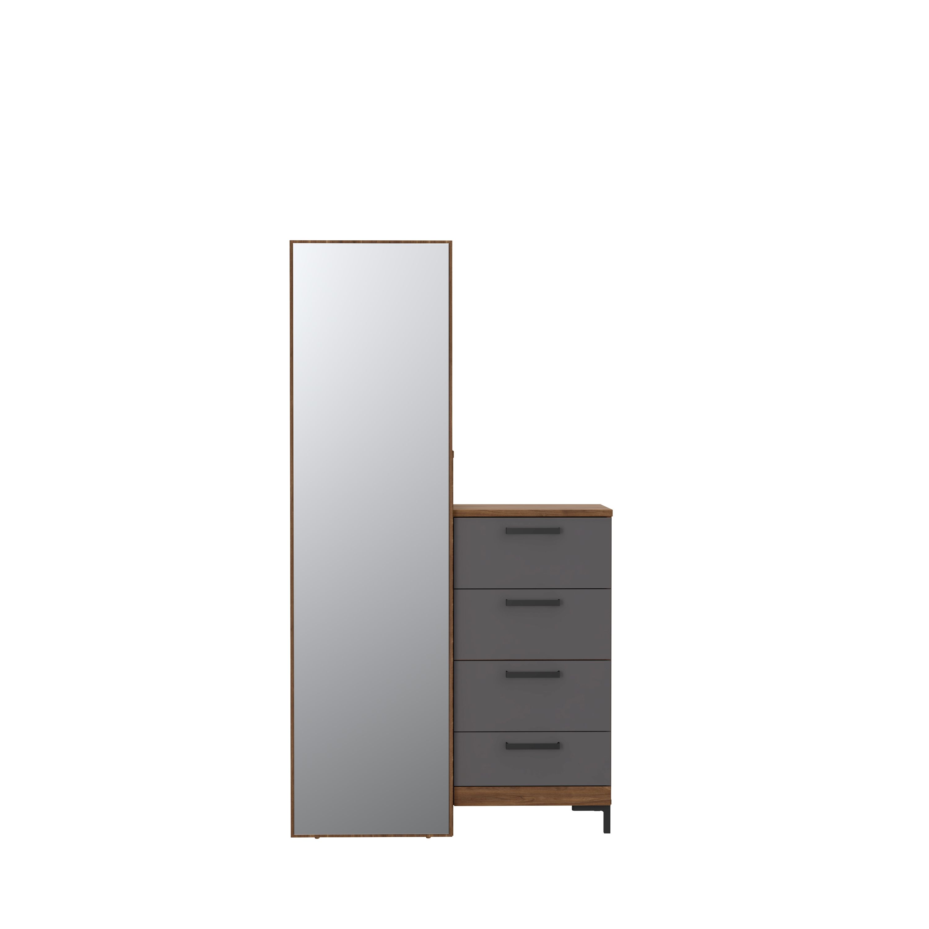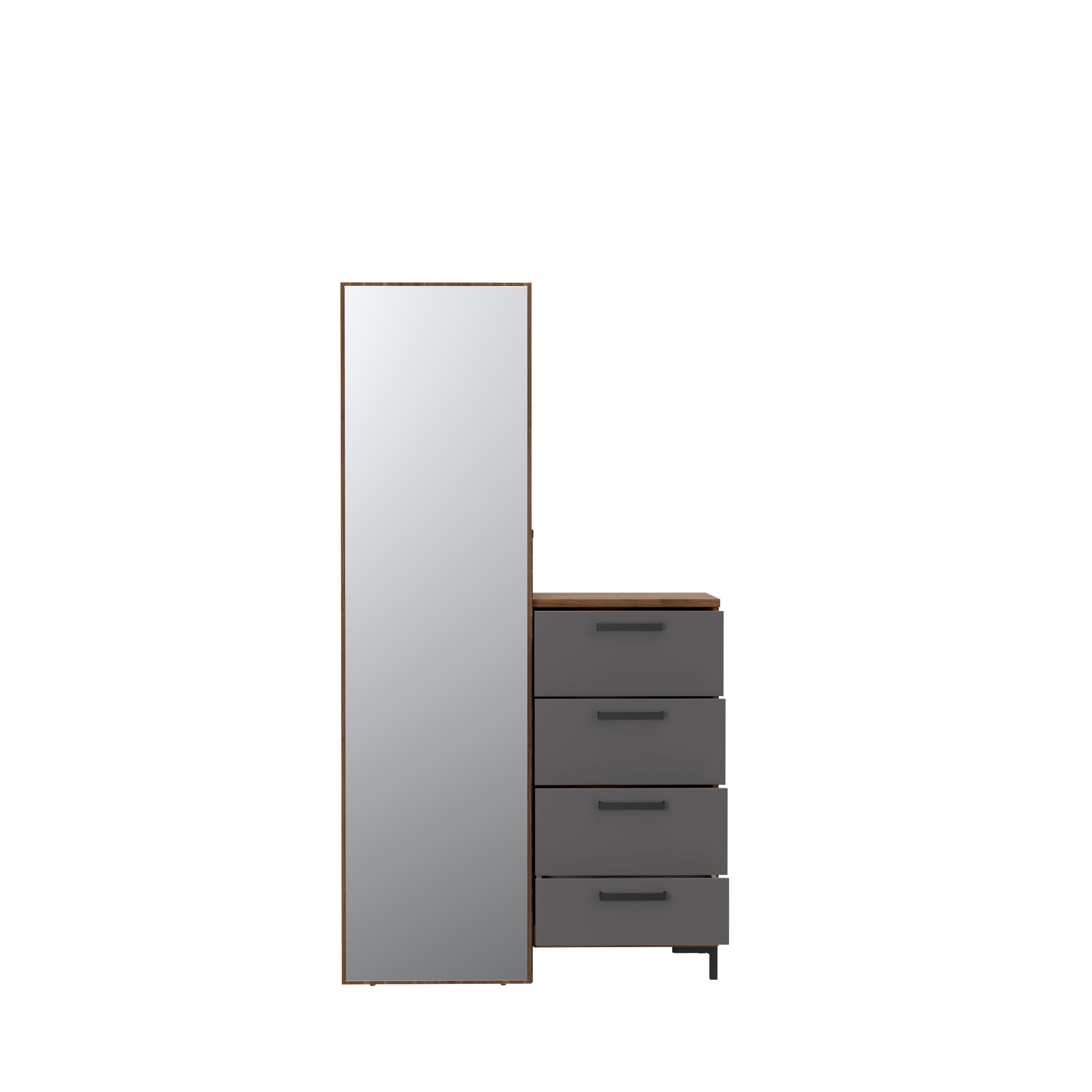 Façade et caisson : décor noyer Bakersfield et ton gris / miroir