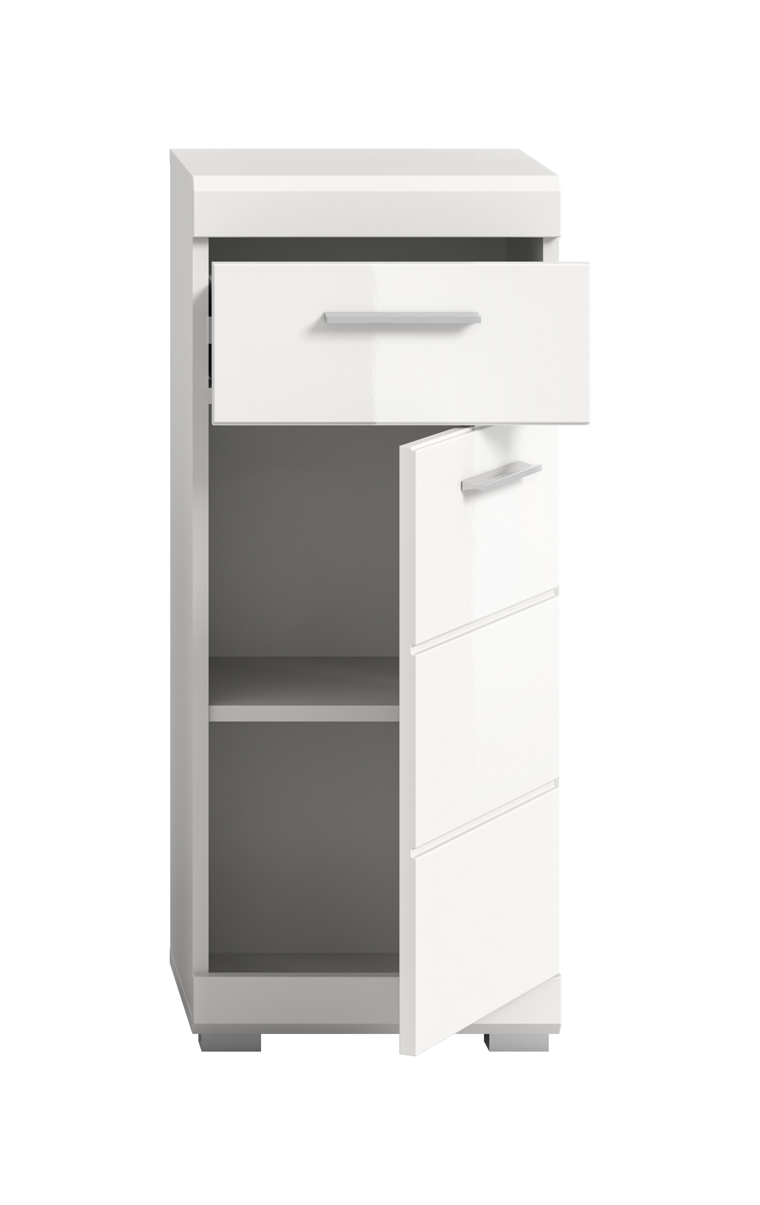 Ajoutez une touche moderne à votre salle de bains grâce à notre meuble de rangement tendance en décor blanc et façades finition thermoformée blanc ultra brillant. Avec ses dimensions compactes, ce meuble apporte un espace de rangement pratique et un design stylé. Découvrez la combinaison parfaite entre fonctionnalité et esthétique avec ce meuble de salle de bains tendance.
