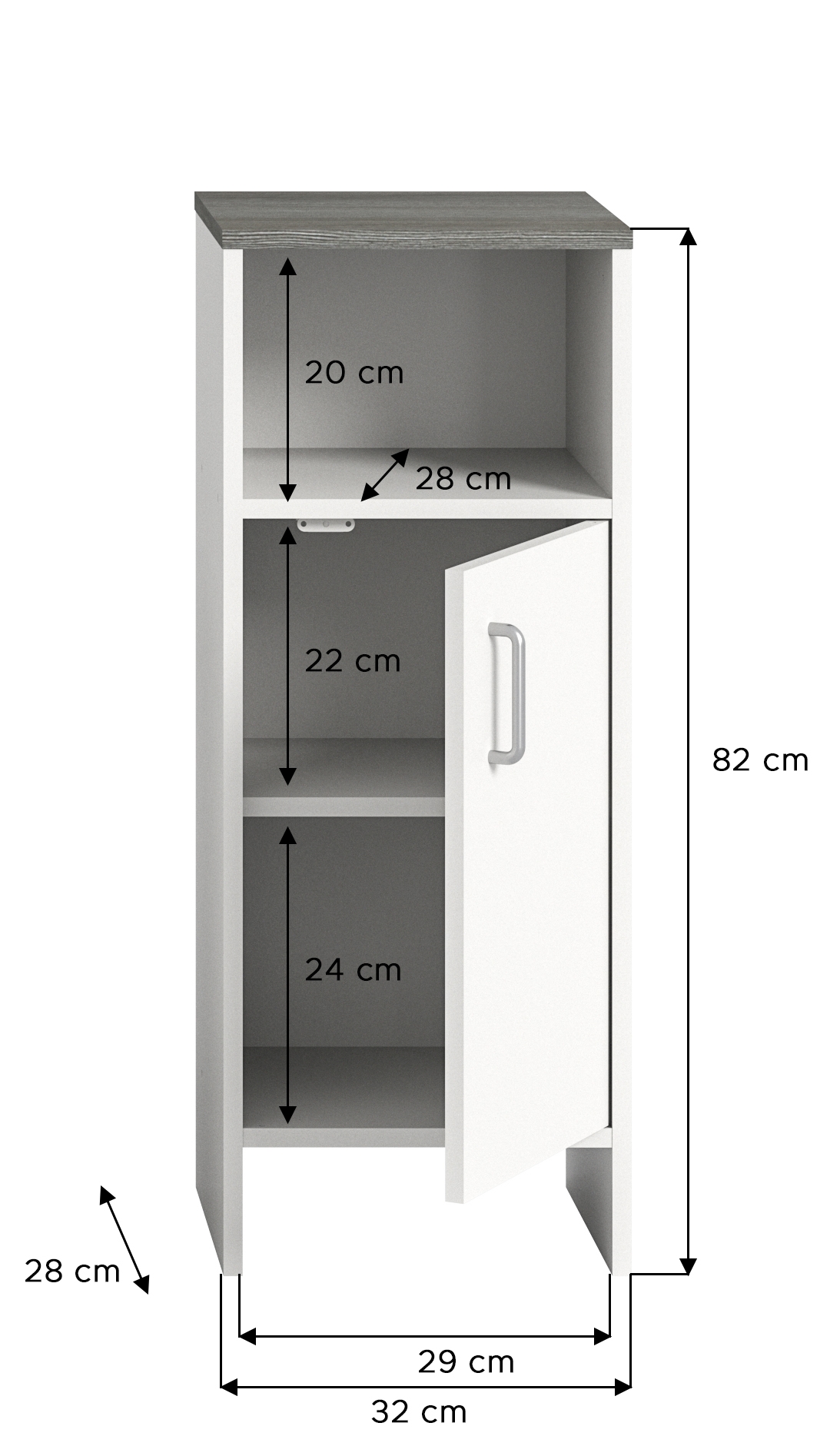 - Fonctionnalité : meuble compact avec suffisamment d’espace de rangement pour les articles de toilette, serviettes et autres accessoires de bain. Grâce à ses dimensions réduites, il s’intègre bien dans les petites salles de bains et offre un espace de rangement supplémentaire dans les pièces plus grandes.
