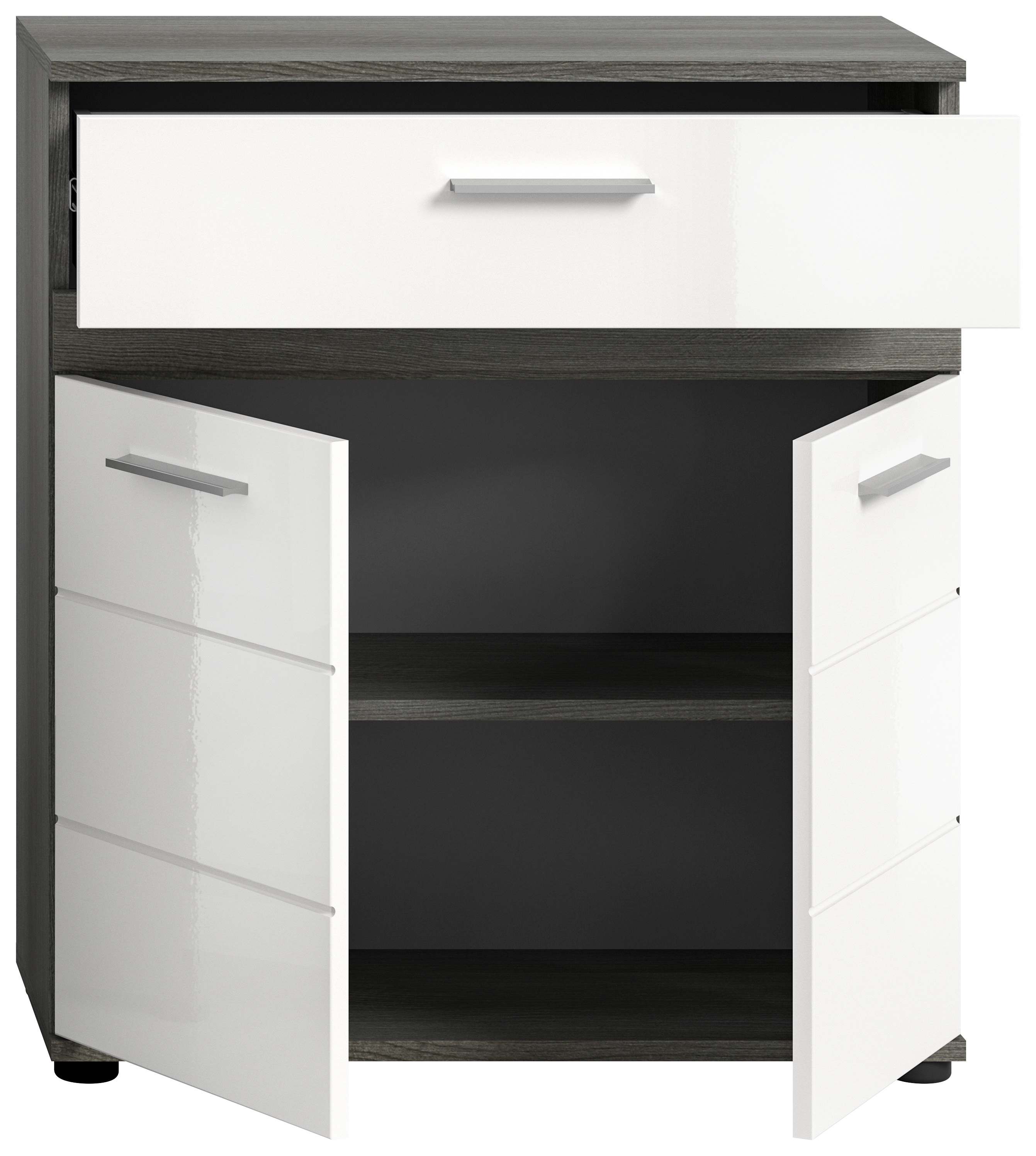 Découvrez notre élégant meuble de salle de bains (dimensions 71x79x31 cm) dans un décor bois ton argent fumé et ton blanc ultra brillant thermoformé. Ce meuble stylé n’offre pas seulement un bel espace de rangement : il conférera également à votre salle de bain une touche de luxe. Optimisez l’utilisation de l’espace et misez sur la qualité avec ce meuble de rangement polyvalent.