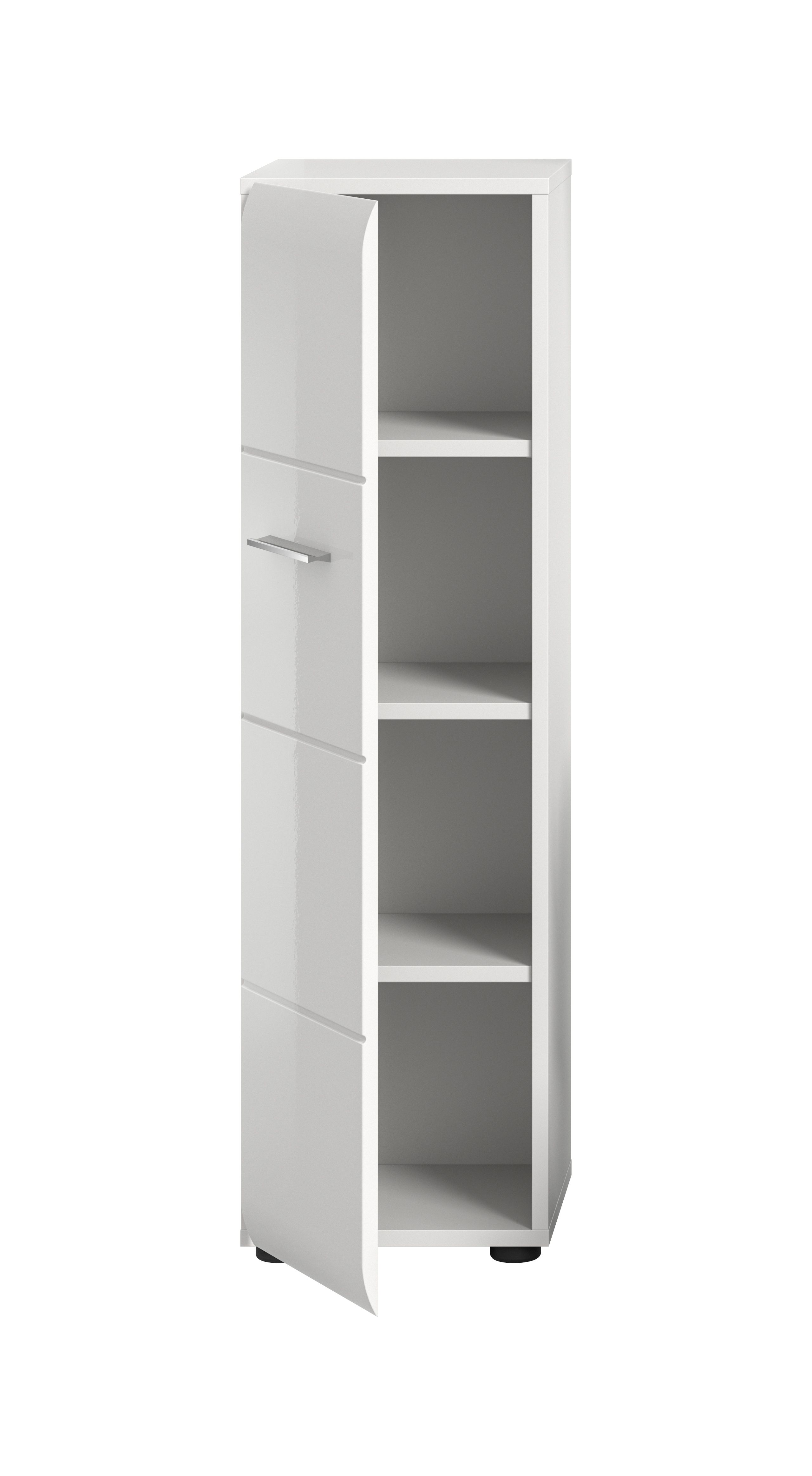 Optimisez votre salle de bains avec ce meuble de rangement pratique (dimensions : 30 x 106 x 30 cm) ! Compact et fonctionnel, il offre tout ce qu’il faut pour un rangement stylé et bien organisé. Équipé d’une porte avec ouverture réversible (à droite ou à gauche), de trois tablettes amovibles réglables en hauteur et de quatre compartiments, ce meuble s’adapte facilement à tous les besoins. Sa façade en MDF avec finition rainurée lui confère un look moderne et durable : la solution idéale pour la salle de bains et pour d’autres pièces.