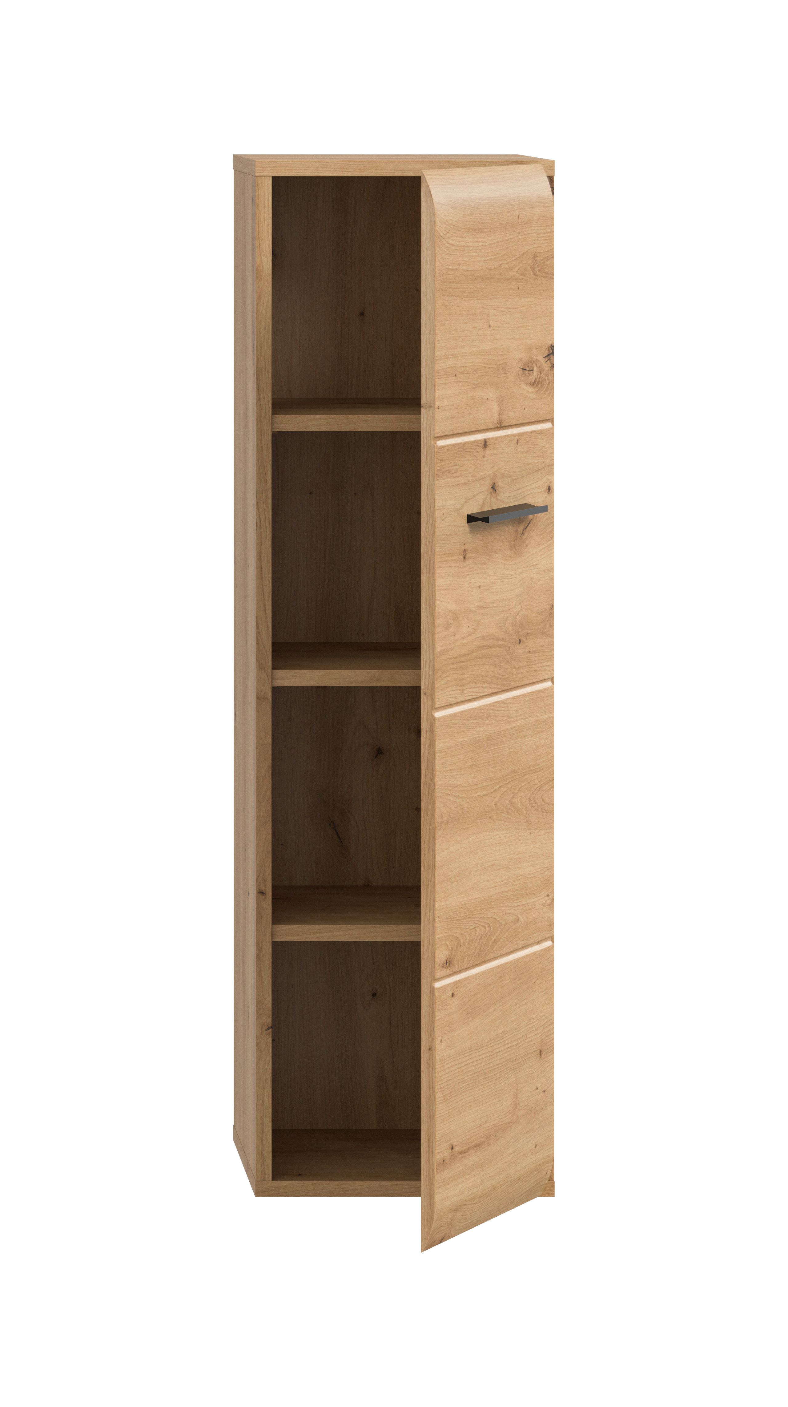 Optimisez votre salle de bains avec ce meuble de rangement pratique (dimensions : 30 x 106 x 30 cm) ! Compact et fonctionnel, il offre tout ce qu’il faut pour un rangement stylé et bien organisé. Équipé d’une porte avec ouverture réversible (à droite ou à gauche), de trois tablettes amovibles réglables en hauteur et de quatre compartiments, ce meuble s’adapte facilement à tous les besoins. Sa façade en MDF avec finition rainurée lui confère un look moderne et durable : la solution idéale pour la salle de bains et pour d’autres pièces.