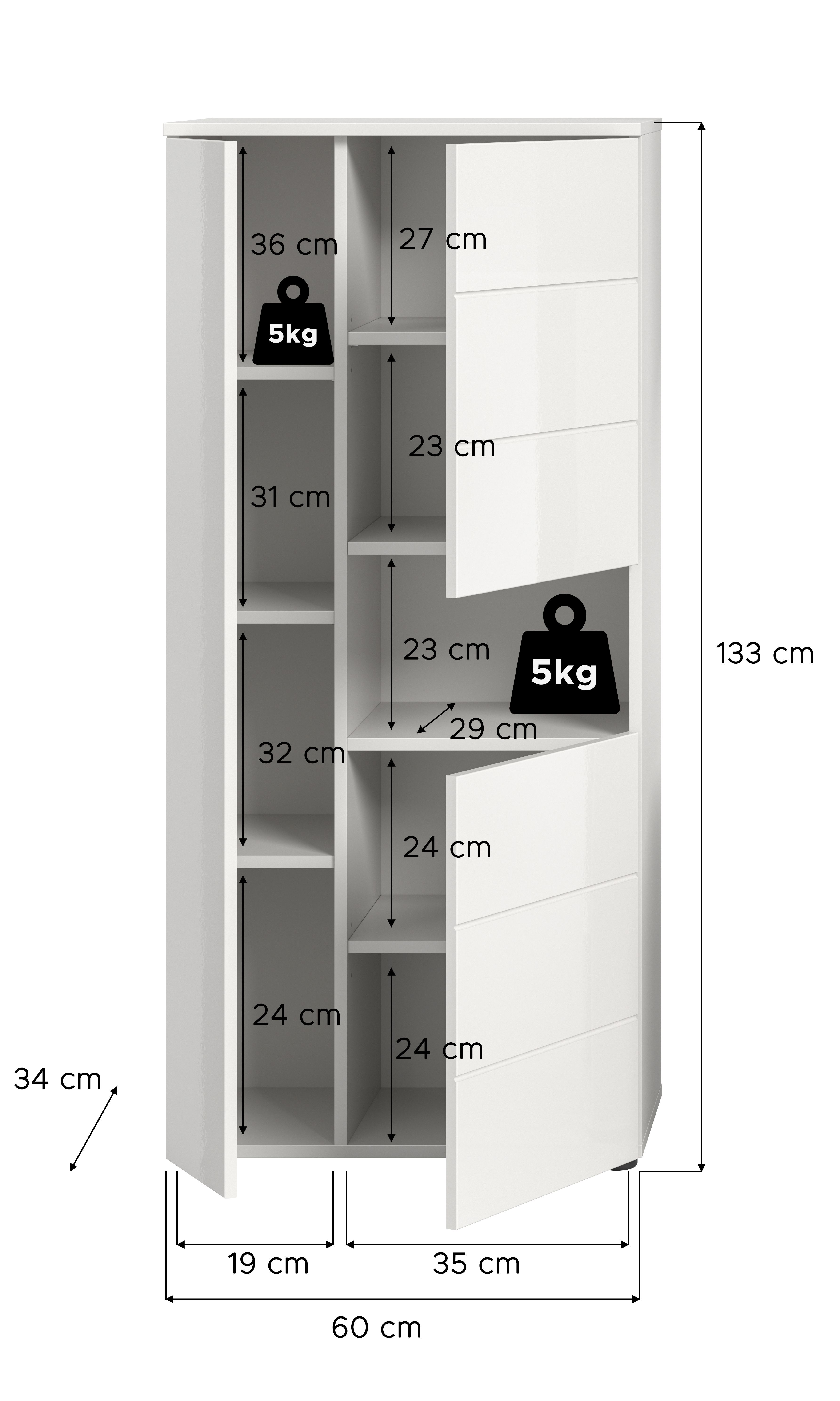 Le meuble demi-colonne (L/H/P: 60x131x34 cm) dans une finition thermoformée ton blanc ultra brillant est le choix idéal pour votre ameublement de salle de bains. Il offre suffisamment d’espace de rangement pour les serviettes, produits de beauté et autres accessoires de bain, tandis que la surface lisse crée un look tendance. Le meuble demi- colonne s’intègre facilement dans tout type d’aménagement de salle de bains et garantit une ambiance organisée et rangée.