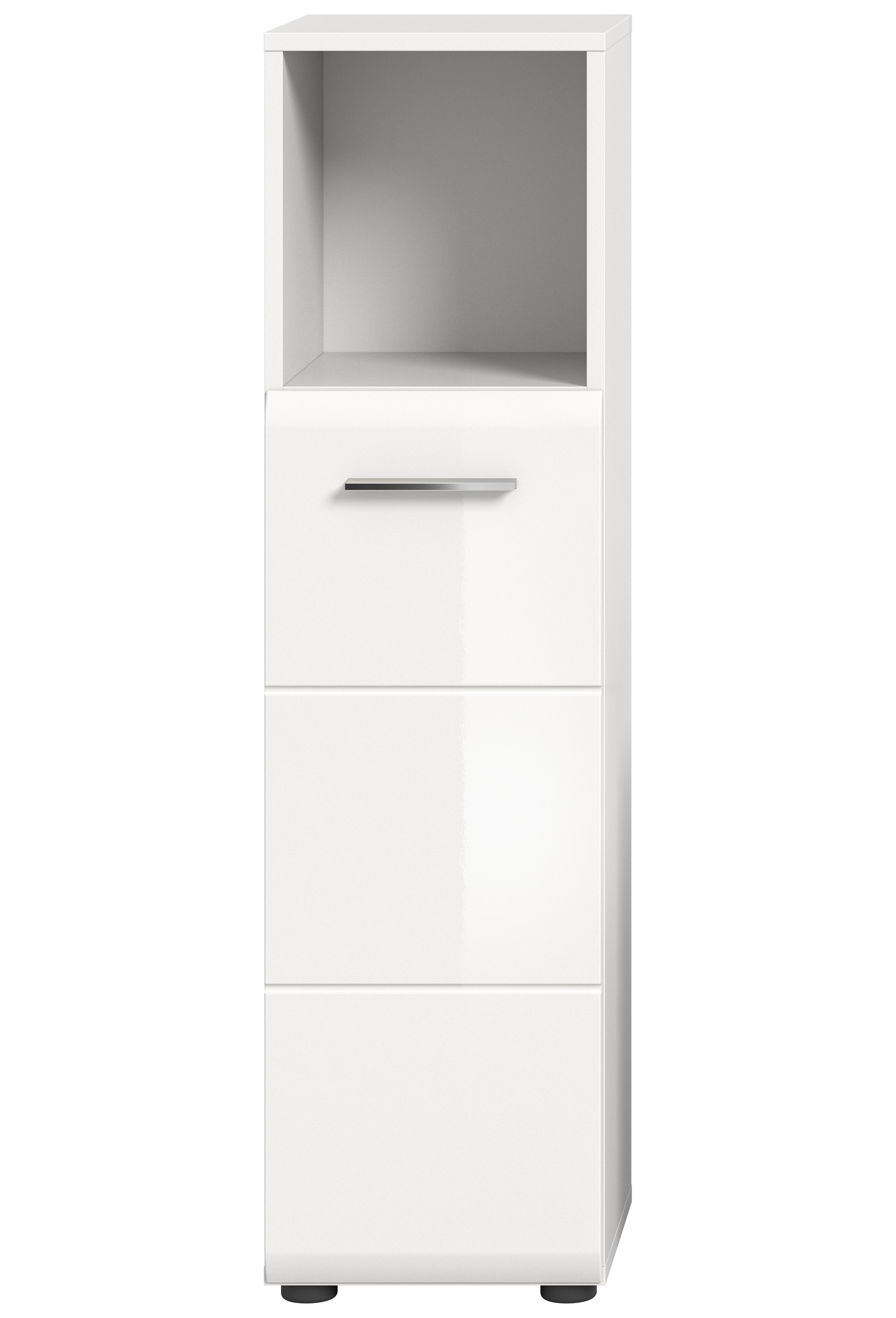 Découvrez notre meuble de salle de bains peu encombrant et spacieux à la fois dans un ton blanc éclatant avec éléments thermoformés ton blanc ultra brillant pour une élégance intemporelle. Grâce à ses dimensions généreuses (30x110x30 cm), ce meuble demi-colonne offre à la fois un bel espace de rangement pour vos accessoires de bain tout en mettant joliment en valeur votre salle de bains avec une touche tendance.