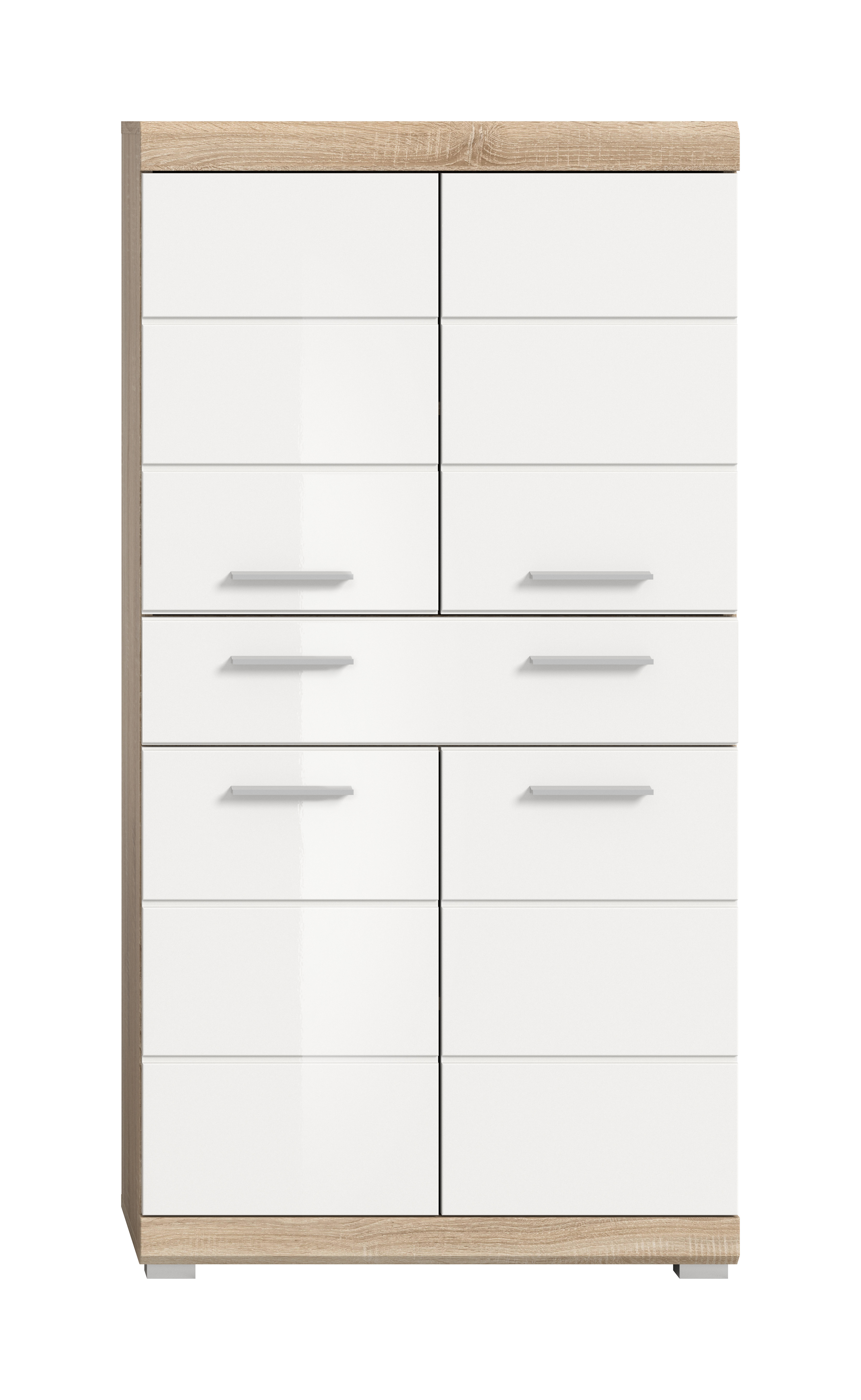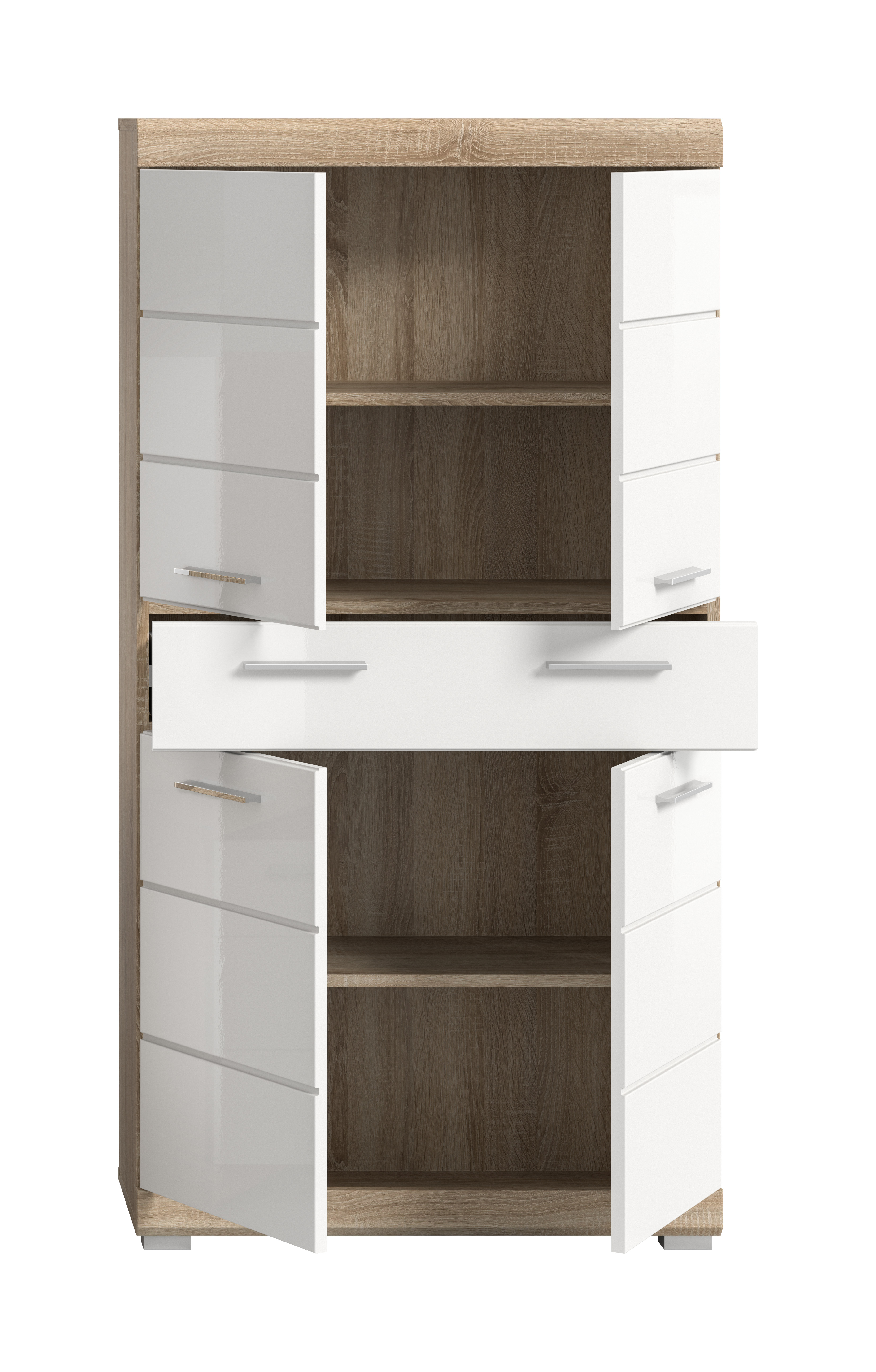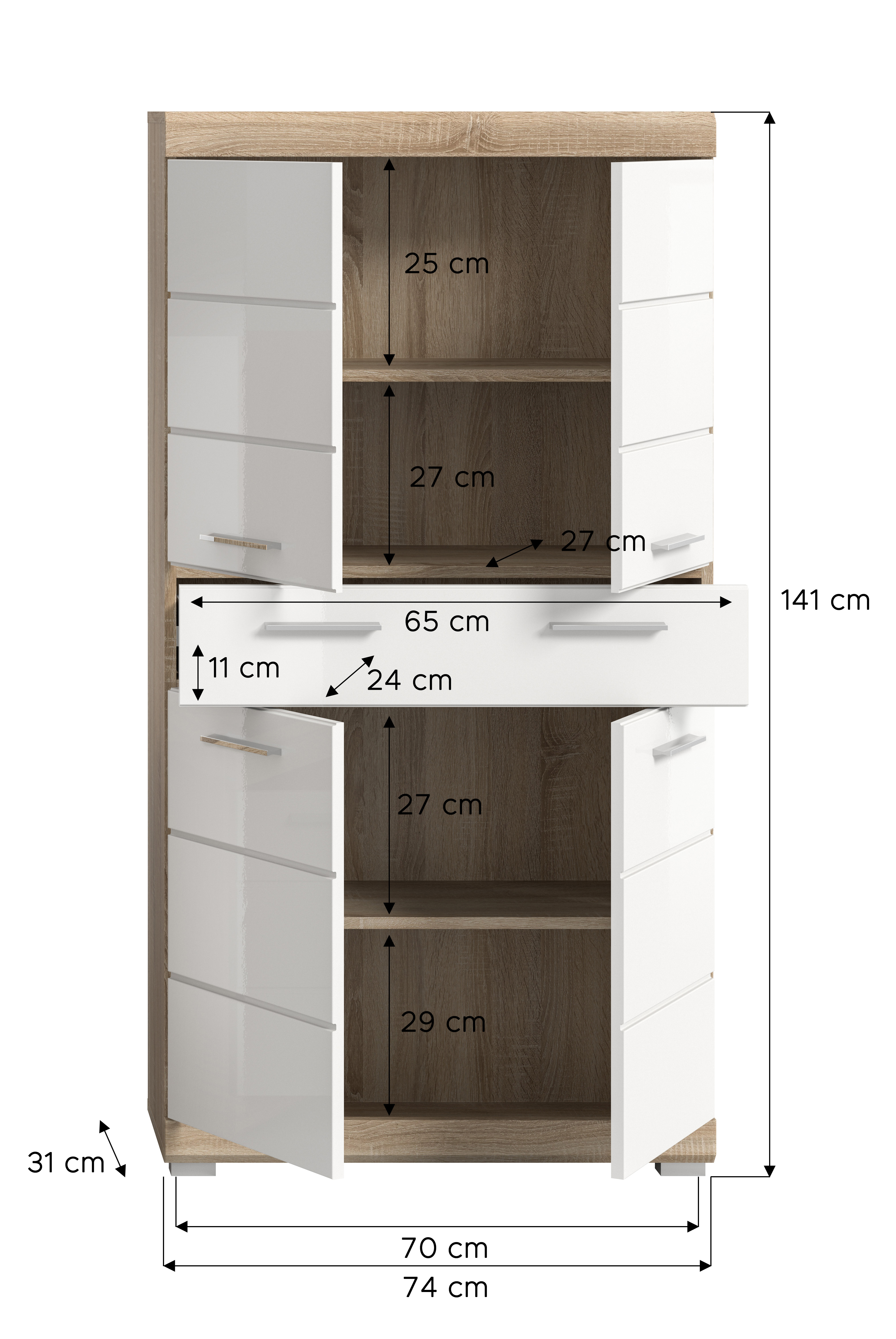 Apportez une touche moderne à votre salle de bains grâce à notre meuble demi-colonne dans un décor chêne Sonoma et façades finition thermoformée ton blanc ultra brillant disponible dans notre collection de meubles contemporains. Avec ses dimensions compactes, ce meuble offre un espace de rangement pratique dans un design stylé. Découvrez la combinaison parfaite entre fonctionnalité et look tendance avec ce modèle incontournable.