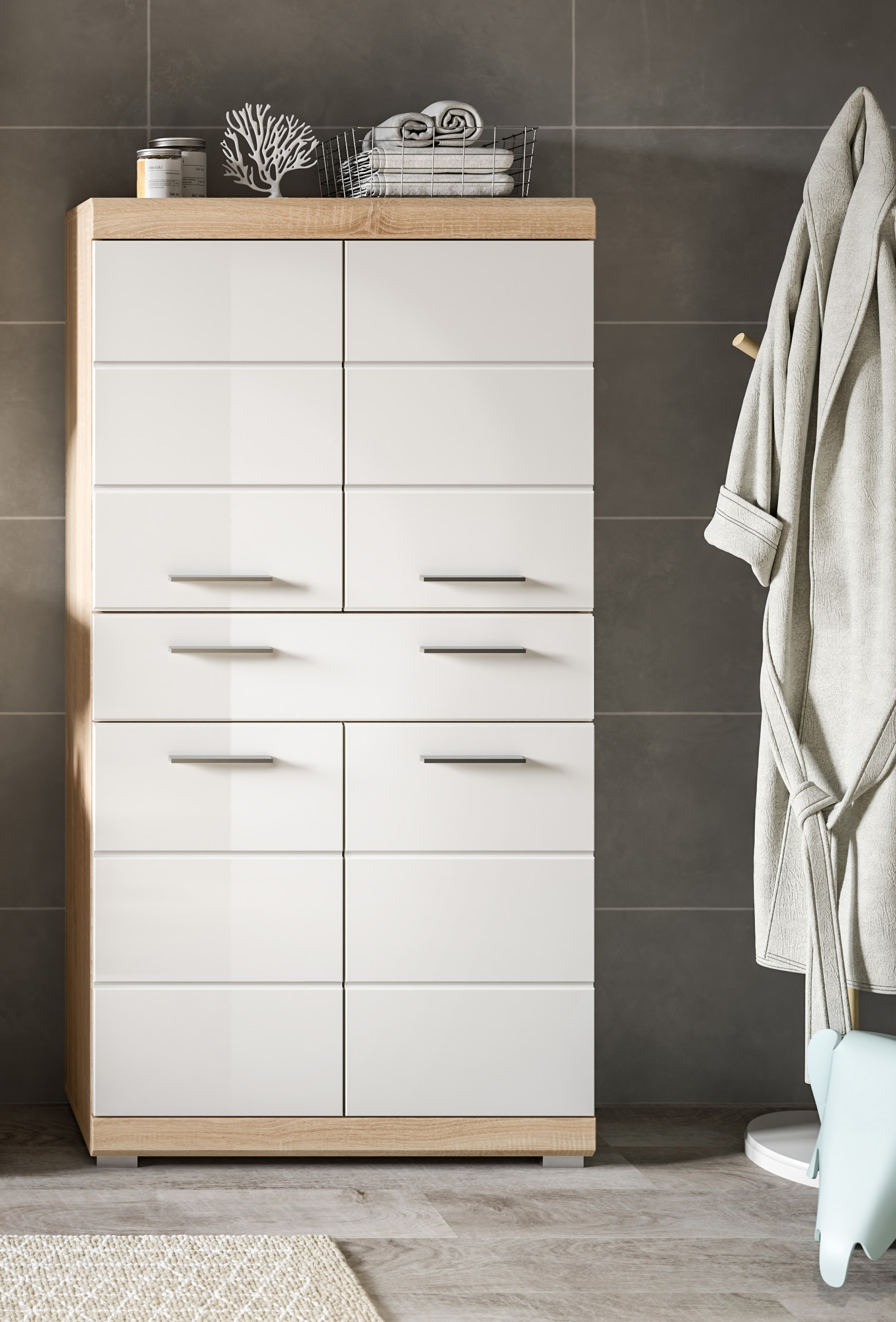• Design/style : la combinaison du décor chêne Sonoma clair et de la finition thermoformée ton blanc ultra brillant crée un rendu moderne et attrayant dans la salle de bains ou la buanderie.