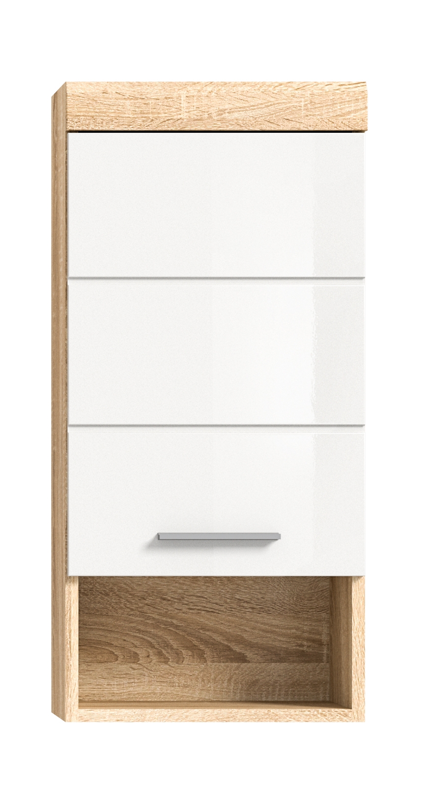 - Design/style : l’association du chêne Sonoma clair et de la finition thermoformée ton blanc ultra brillant confère à ce meuble haut un look moderne et élégant et donne à la salle de bains ou à la buanderie une touche stylée.