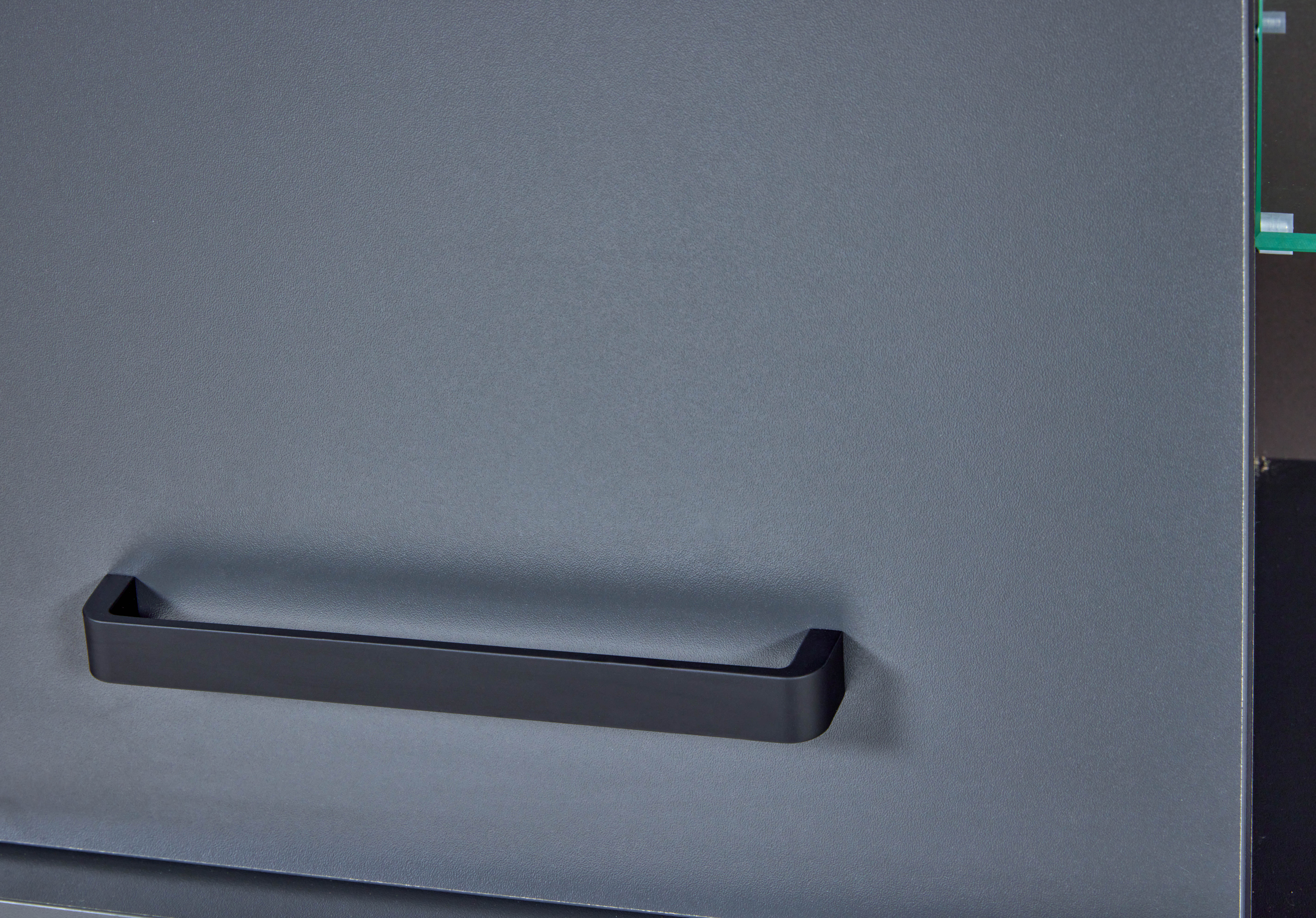 Façade et caisson : panneaux de particules MDF (panneau de fibres de bois de densité moyenne) ton anthracite