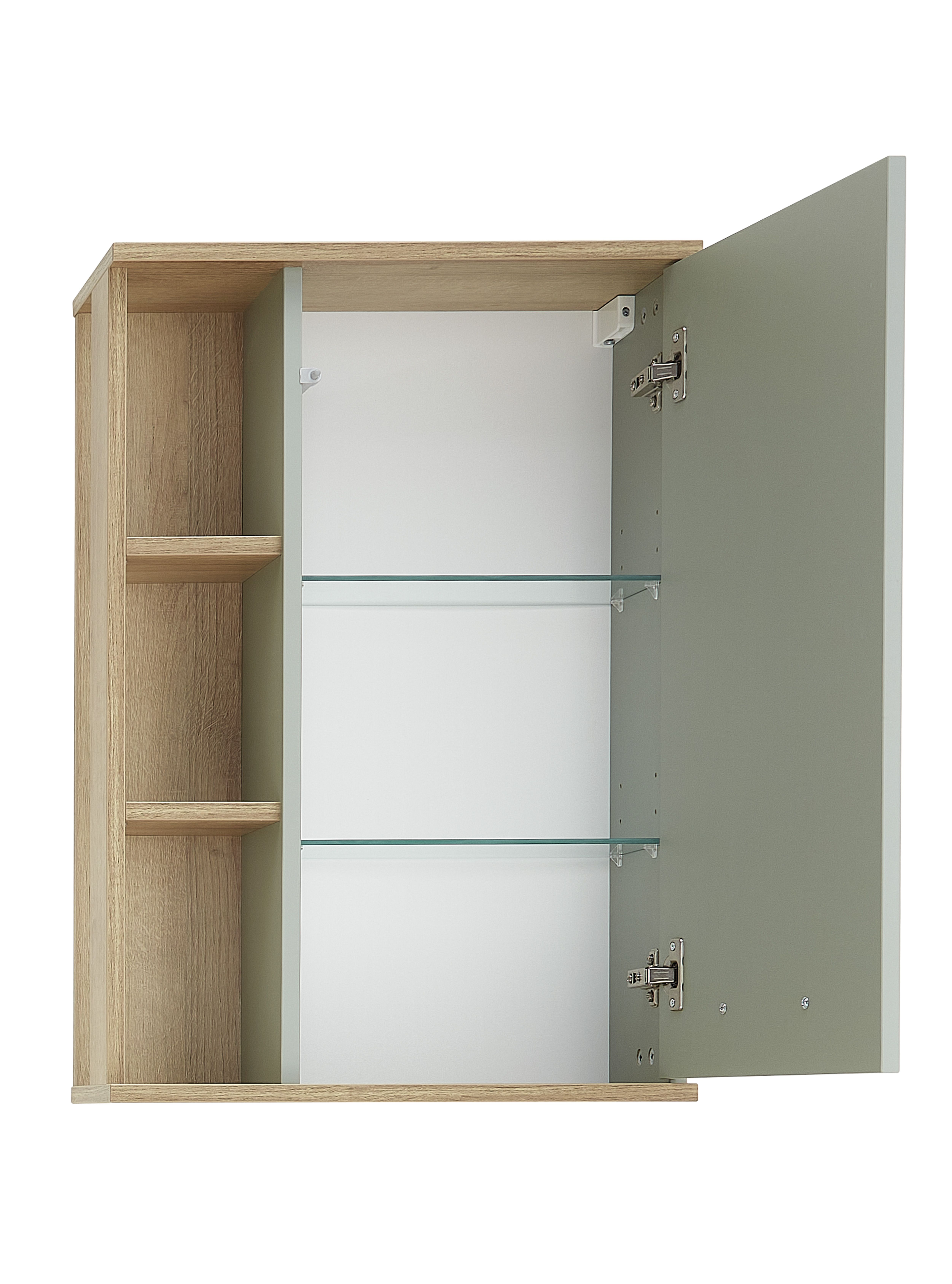 1 porte battante avec, derrière elle, 2 tablettes en verre