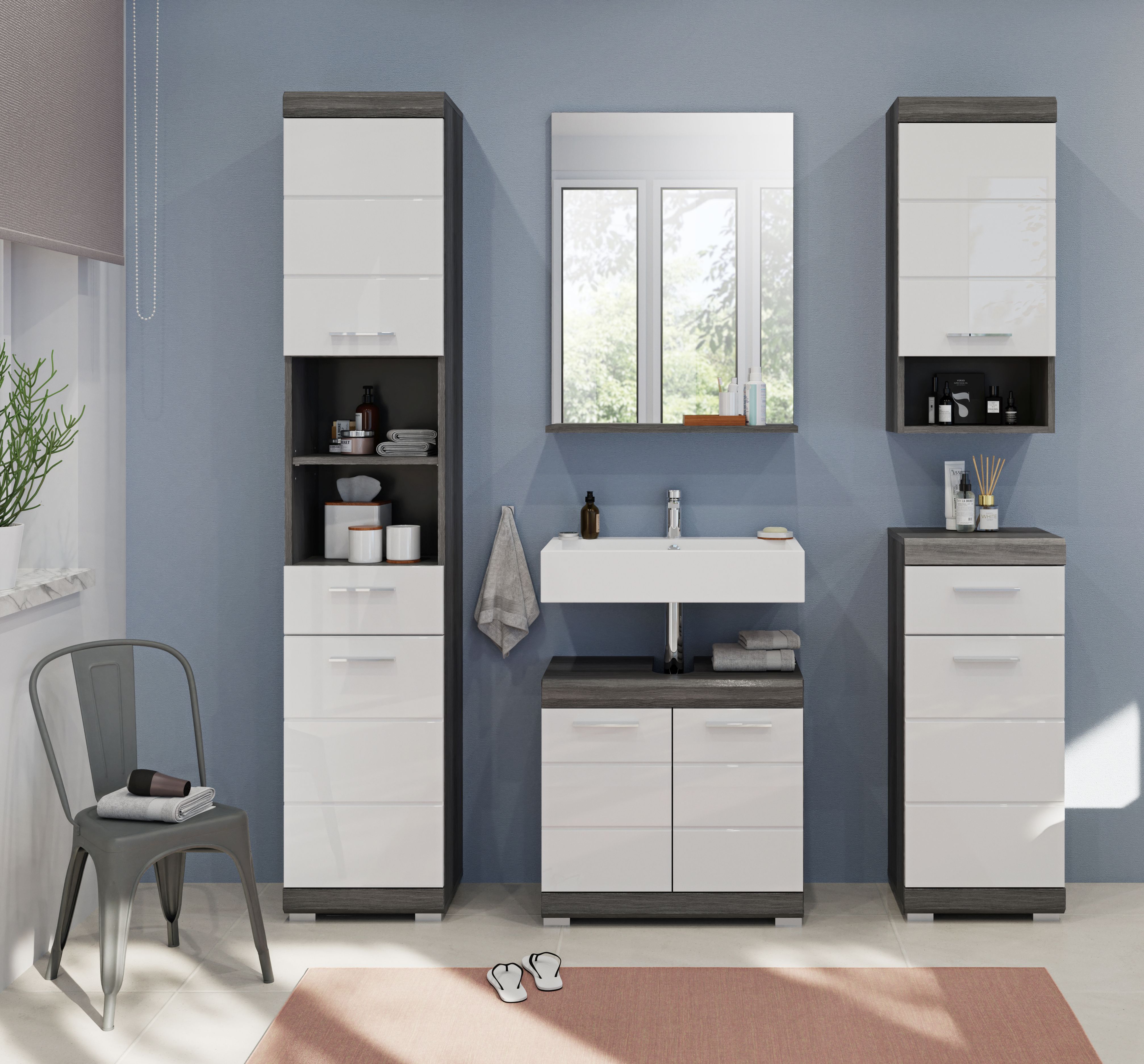 Une touche stylée et tendance : notre meuble haut décor argent fumé et finition ton blanc ultra brillant est le complément parfait pour une salle de bains moderne. Avec ses dimensions compactes (37x79x24 cm), il offre un espace de rangement pratique dans un design contemporain. Découvrez dès maintenant ce meuble dans un look tendance pour votre salle de bains !
