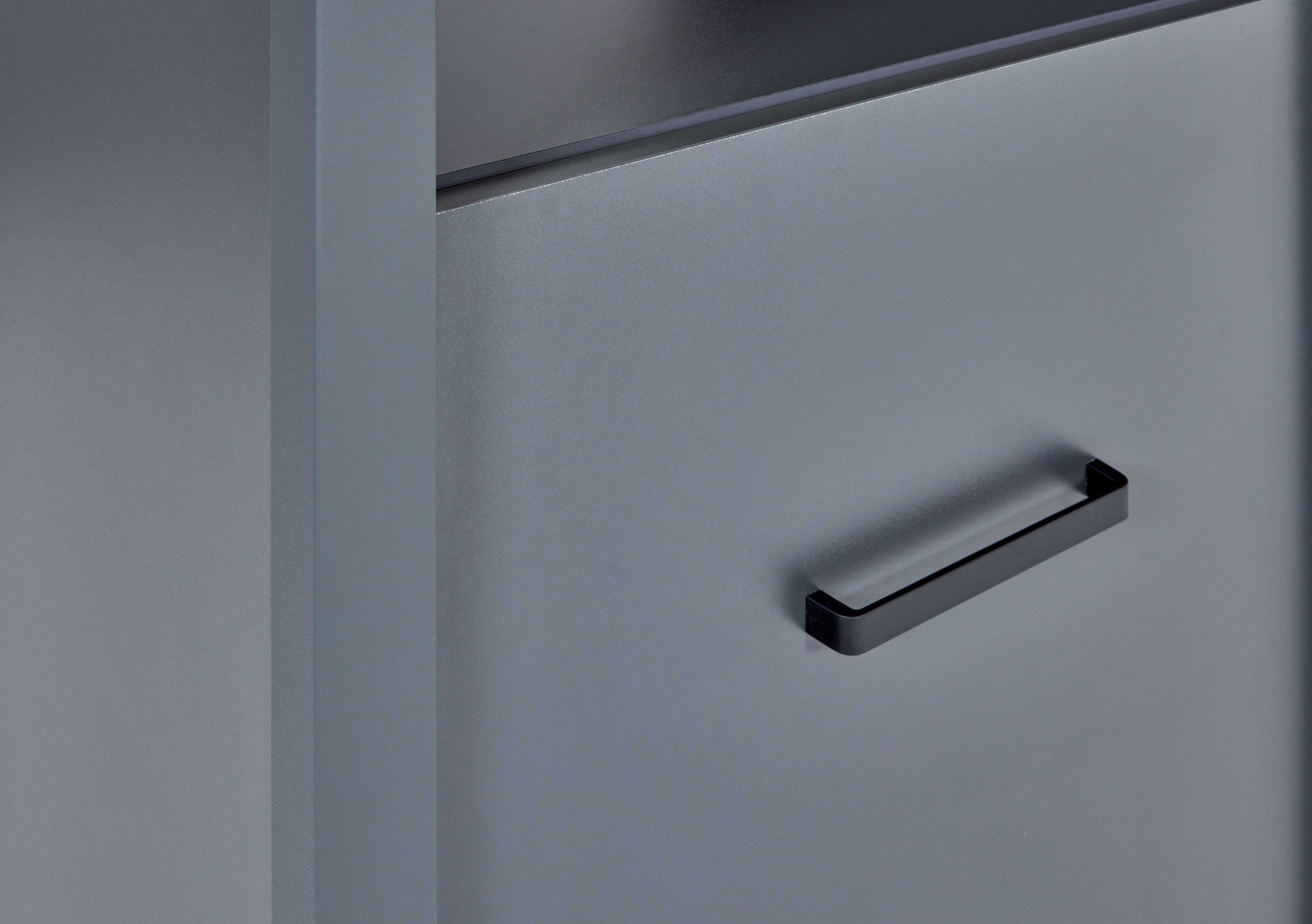 Façade et caisson : panneaux de particules MDF (panneau de fibres de bois de densité moyenne) ton anthracite