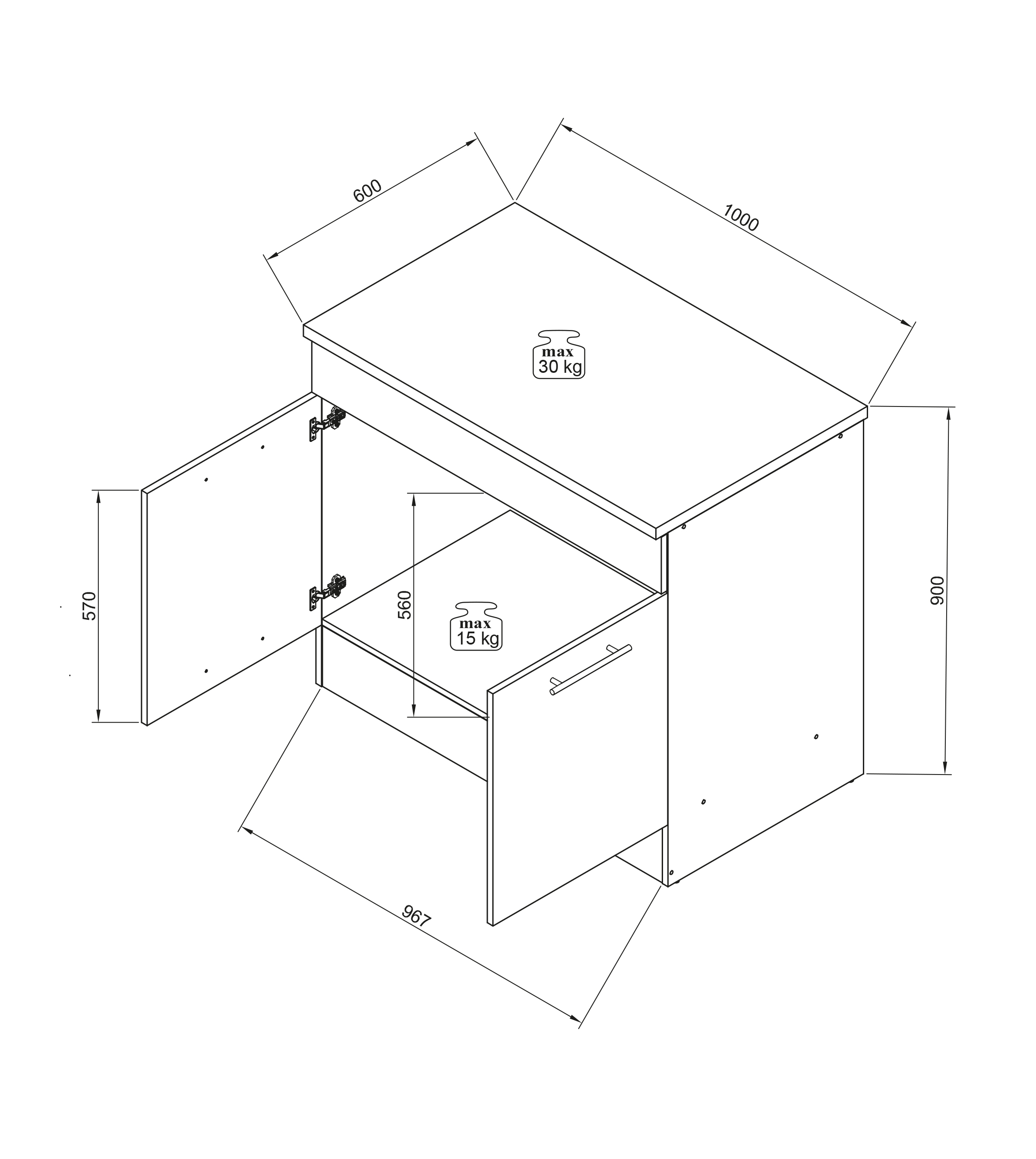 | Meuble sous évier | 100 | 90 | 60 |