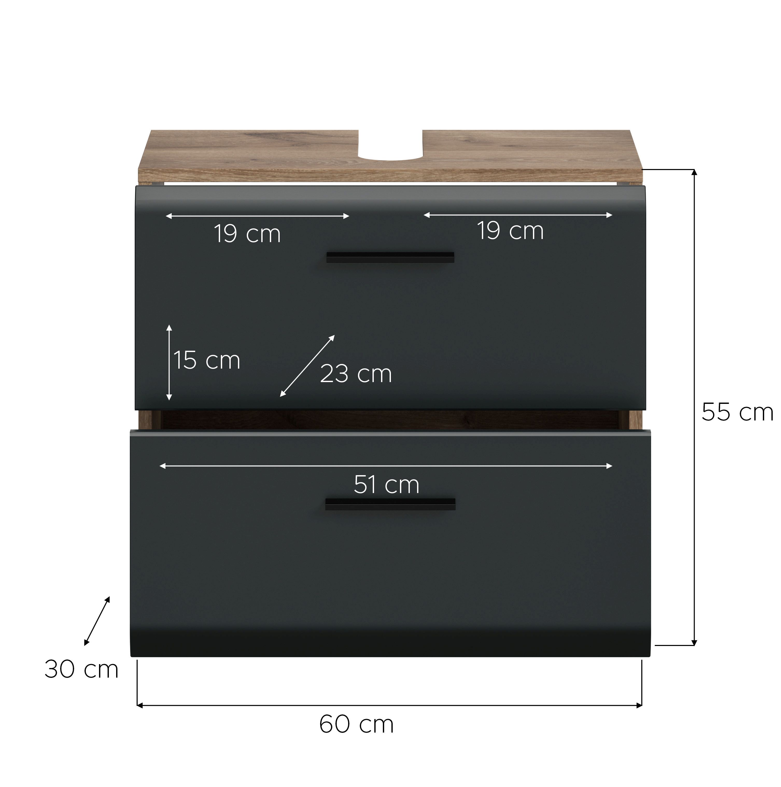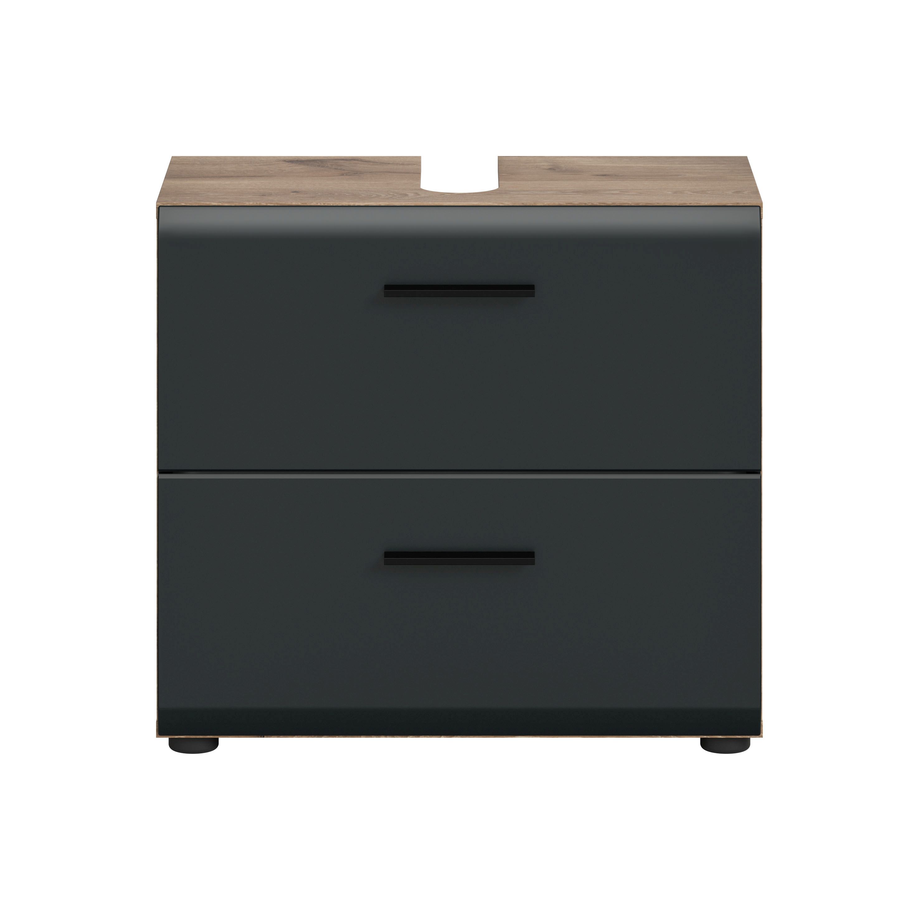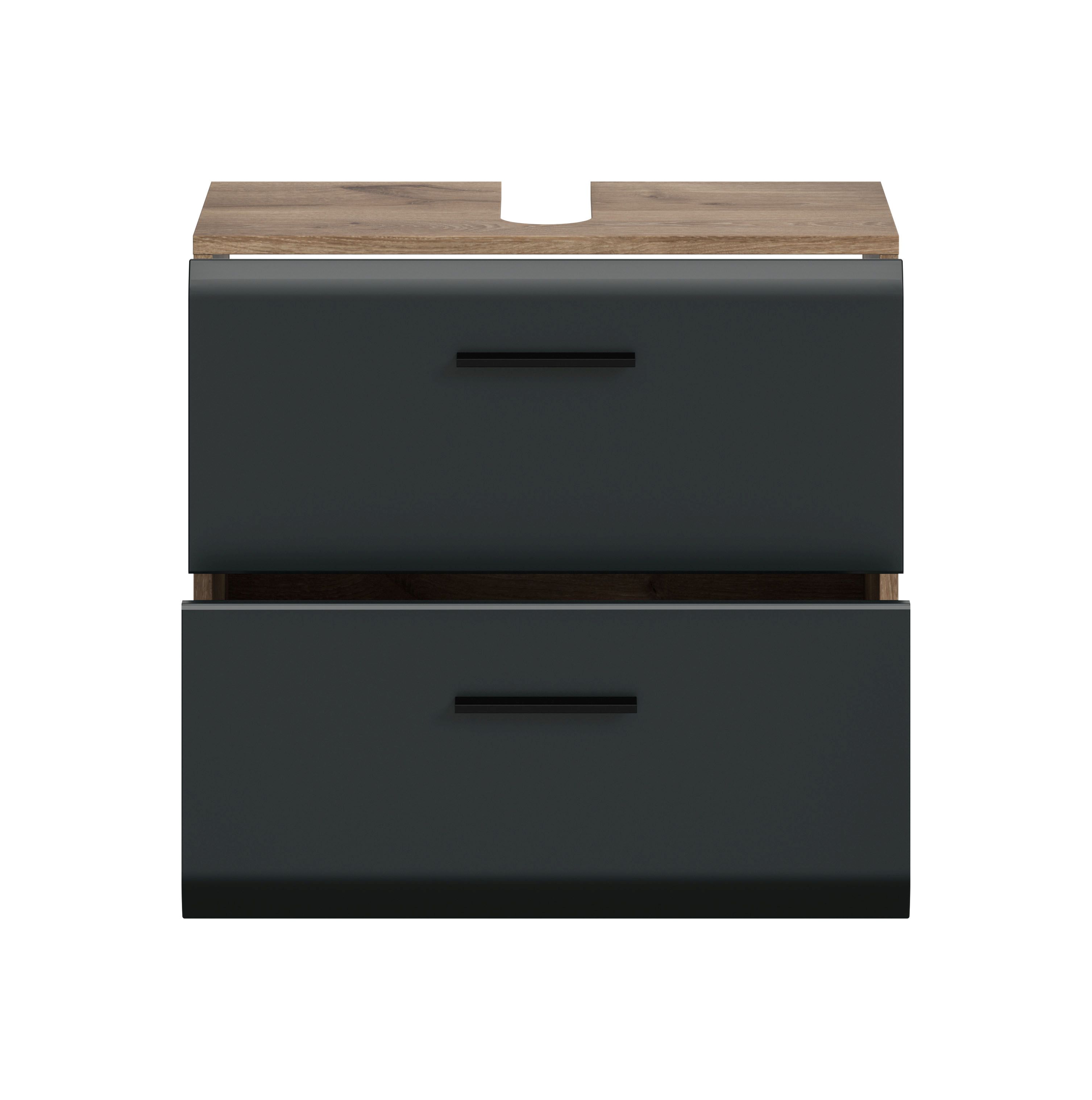 Meuble sous lavabo (L/H/P: 60x54x32 cm) ton noir mat et décor chêne Nox.
