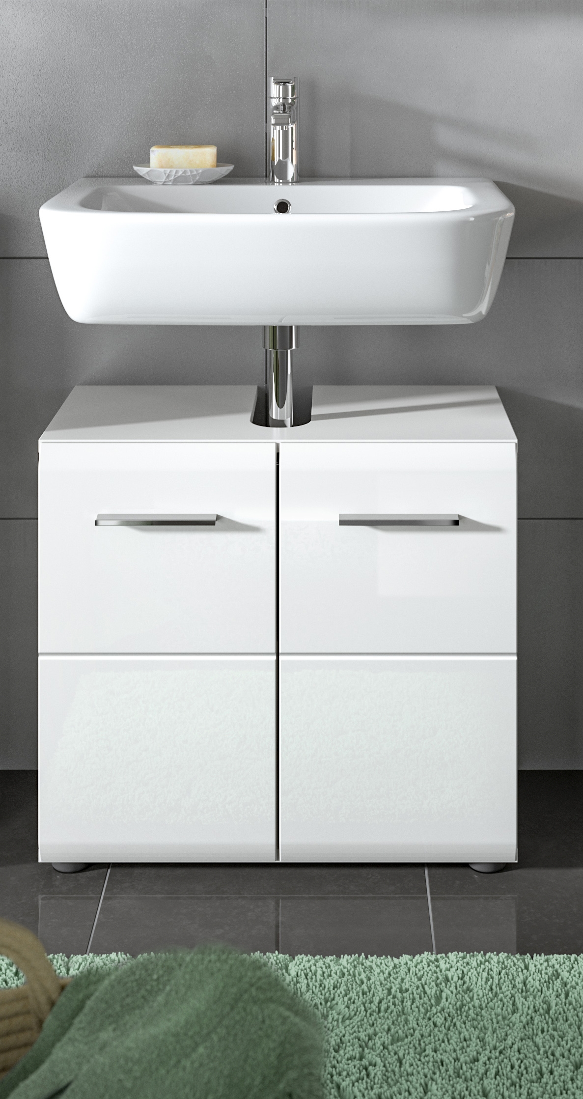Meuble sous lavabo (L/H/P: 60x54x32 cm) ton blanc et ton blanc ultra brillant thermoformé.