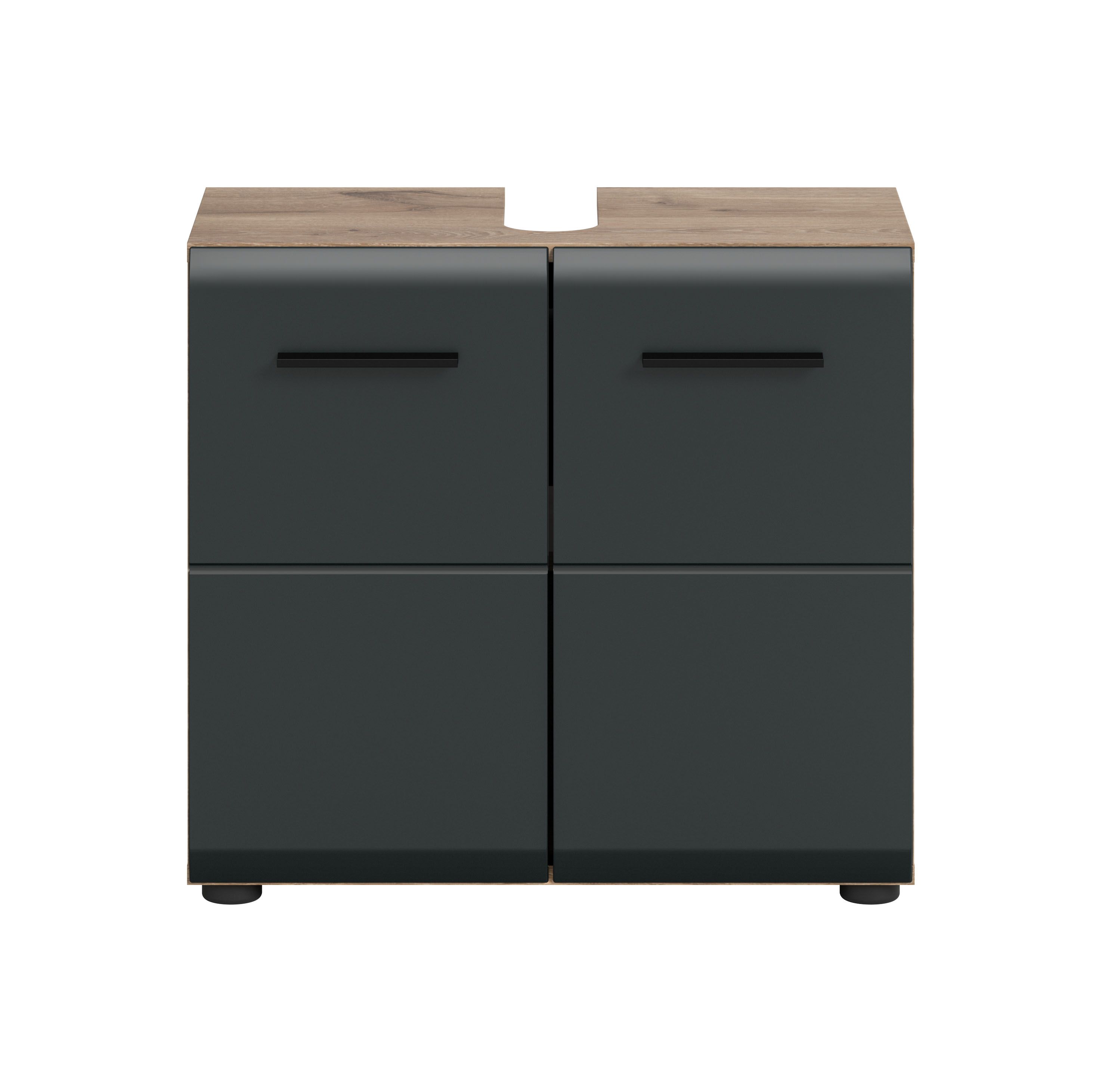 Meuble sous lavabo (L/H/P: 60x54x32 cm) ton noir mat et décor chêne Nox.