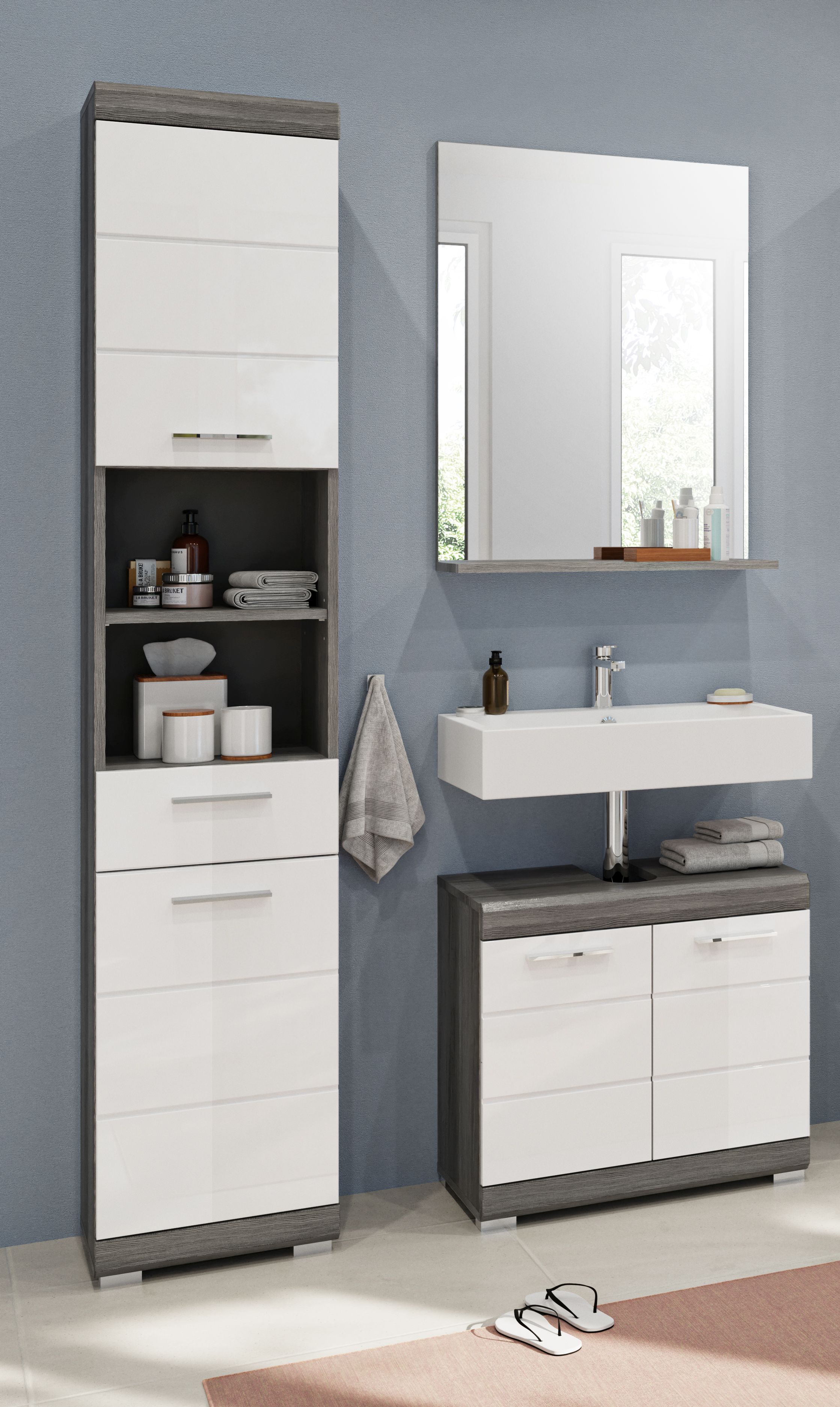 • Design/style : élégant meuble sous lavabo décor argent fumé et finition ton blanc ultra brillant qui s’intègre parfaitement dans différents types de salles de bains et buanderies tout en créant une ambiance esthétique et moderne.