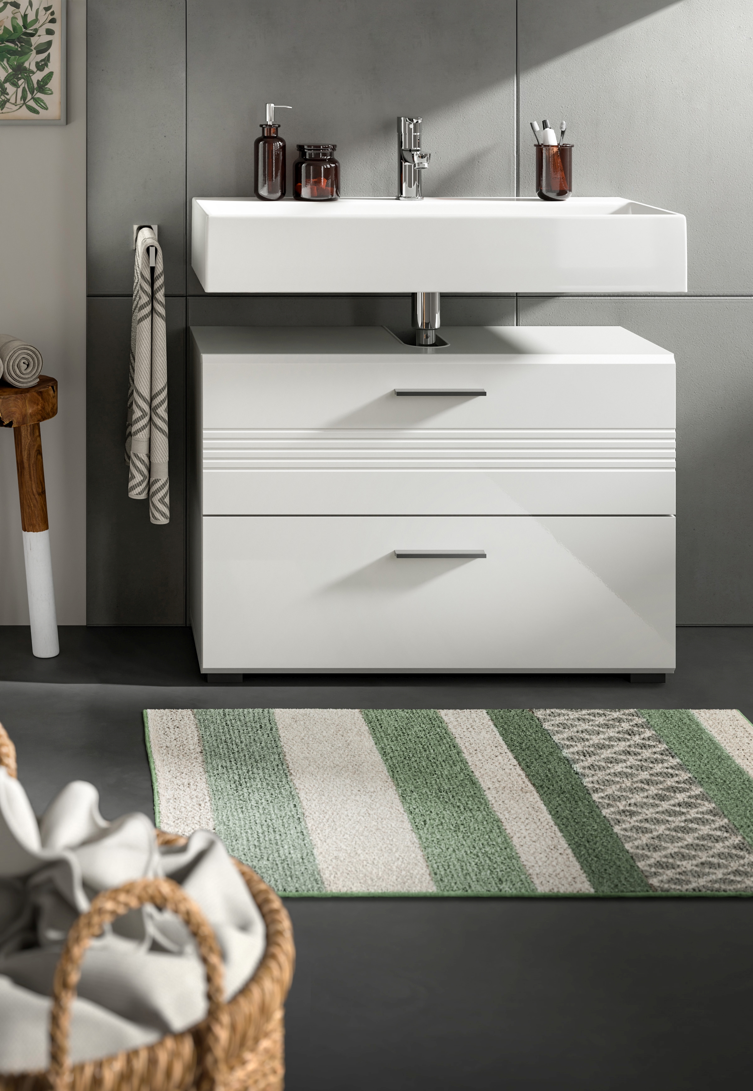 Découvrez notre meuble de salle de bains de qualité dans un élégant décor ton gris clair et ton blanc ultra brillant thermoformé à la finition étincelante. Grâce à ses dimensions (L/H/P: 80x56x32 cm), ce meuble n’offre pas seulement un bel espace de rangement : il conférera également à votre salle de bains une touche tendance. Ce meuble est la solution idéale pour associer style et fonctionnalité dans votre salle de bains.