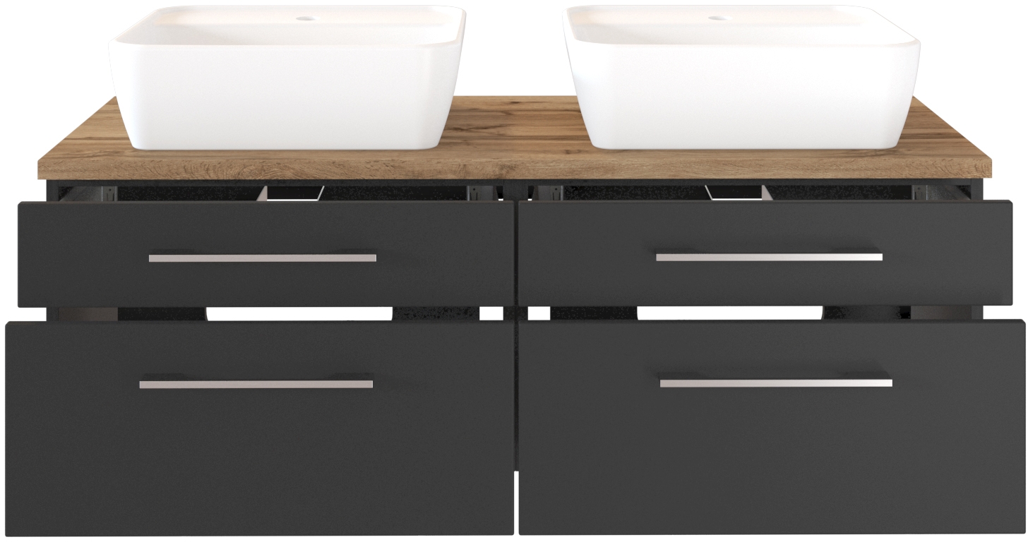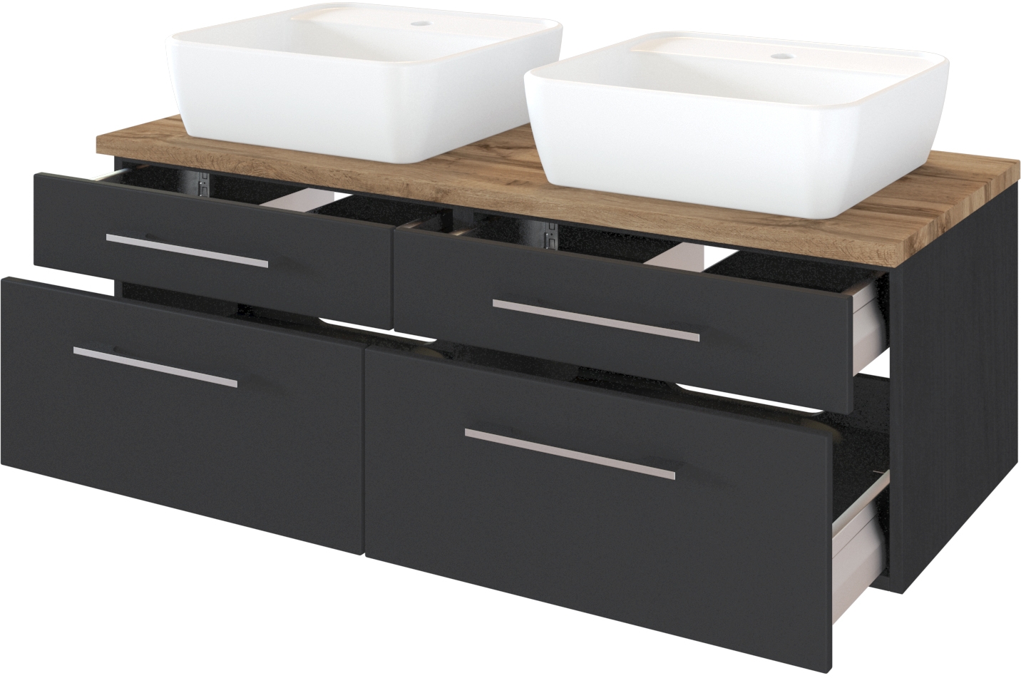 1 meuble sous vasque avec 2 tiroirs bas et 2 tiroirs hauts avec fermeture amortie, incl. découpe siphon