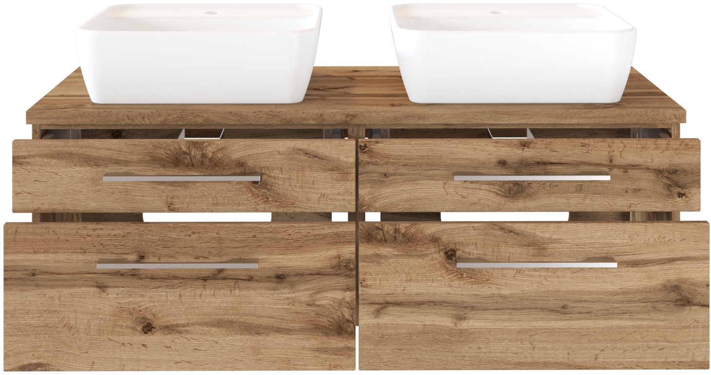 1 meuble sous vasque avec 2 tiroirs bas et 2 tiroirs hauts avec fermeture amortie, incl. découpe siphon
