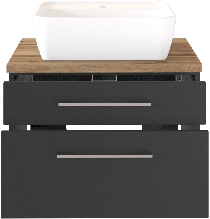 1 meuble sous vasque avec 1 tiroir bas et 1 tiroir haut avec fermeture amortie, incl. découpe siphon