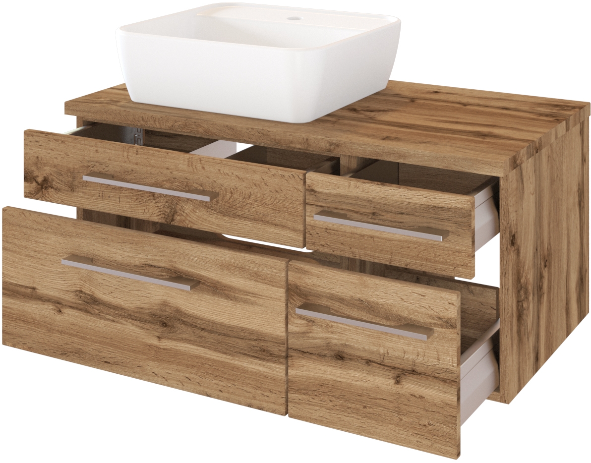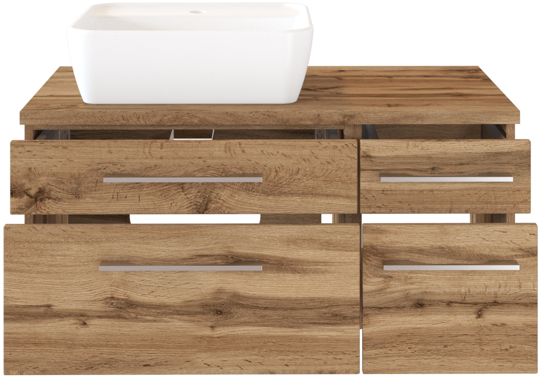 1 meuble sous vasque avec 2 tiroirs bas et 2 tiroirs hauts avec fermeture amortie, incl. découpe siphon