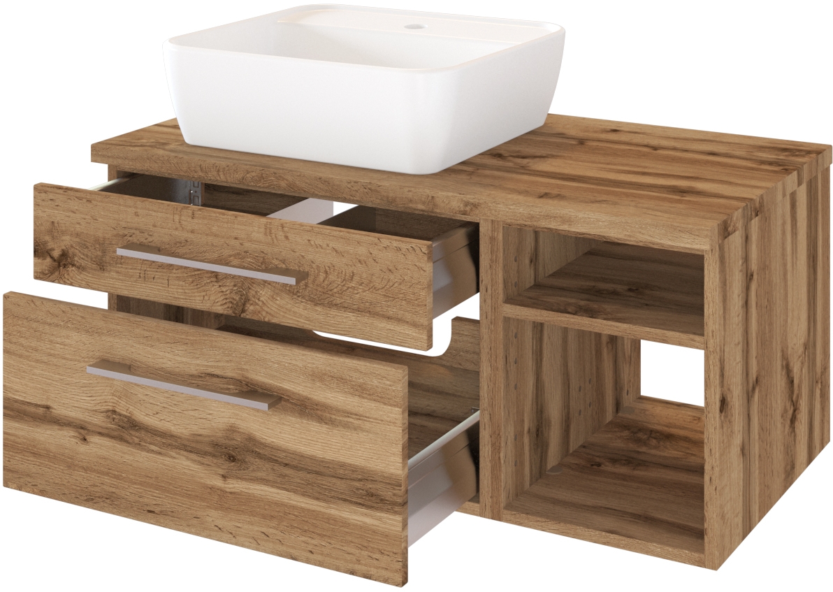 Meuble sous vasque 90 avec vasque à poser à gauche DAVOS