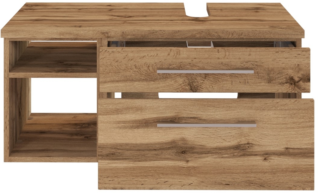Façade : MDF (panneaux de fibres de bois de densité moyenne) ton imitation chêne Wotan