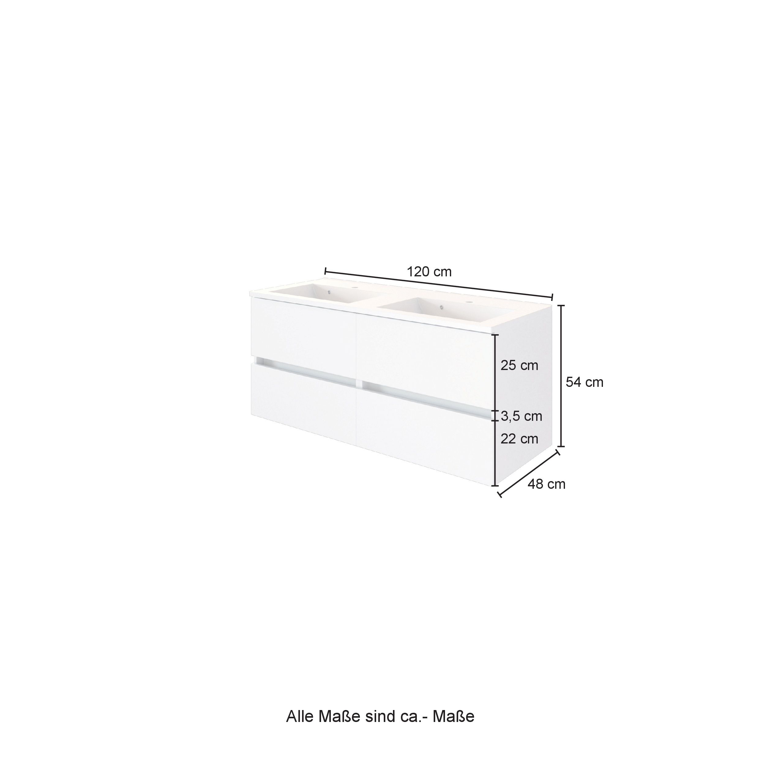 1 meuble sous vasque avec 4 tiroirs en métal avec fermeture amortie, sans poignées