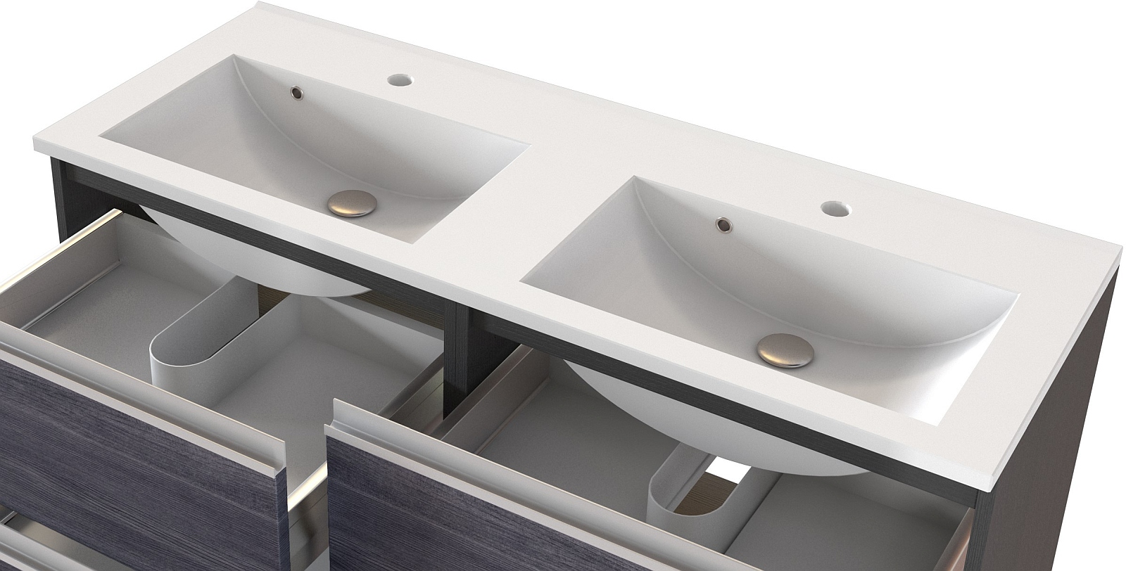1 meuble sous vasque avec 4 tiroirs sur rails métalliques à fermeture amortie