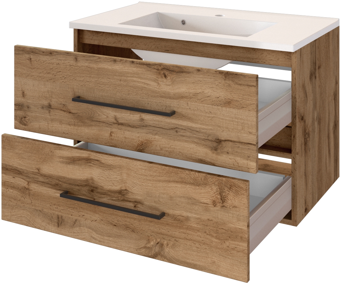 1 meuble sous vasque avec 2 tiroirs en métal à sortie totale avec fermeture amortie