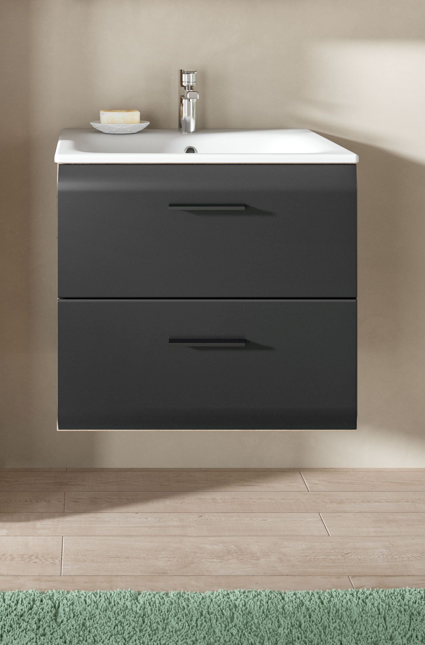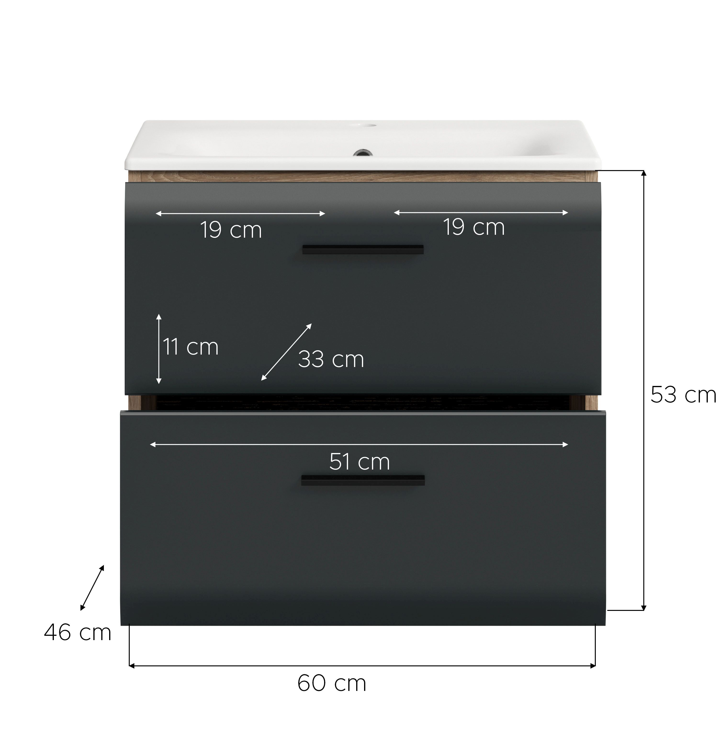 - Incl. vasque intégrée en céramique, 2 tiroirs