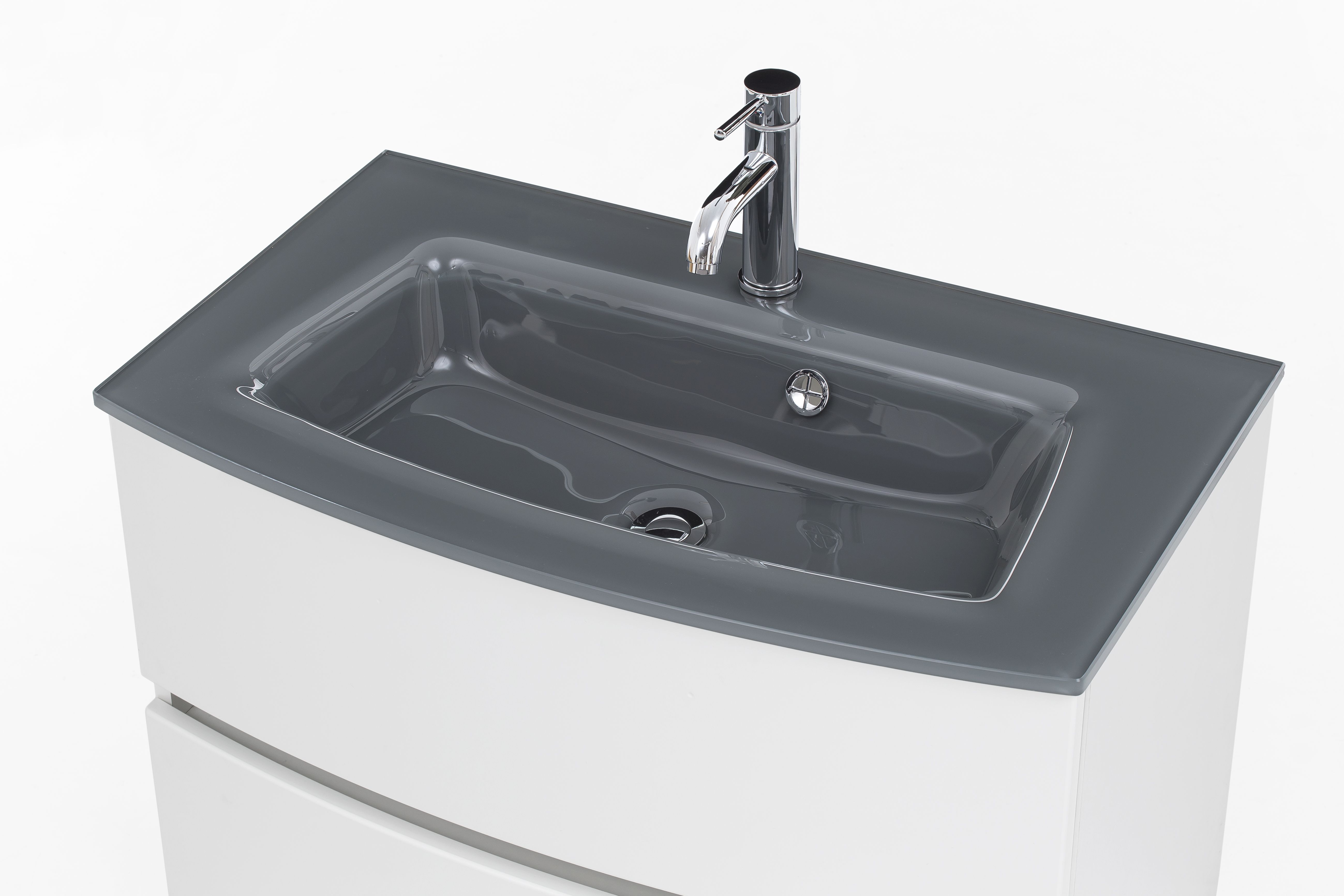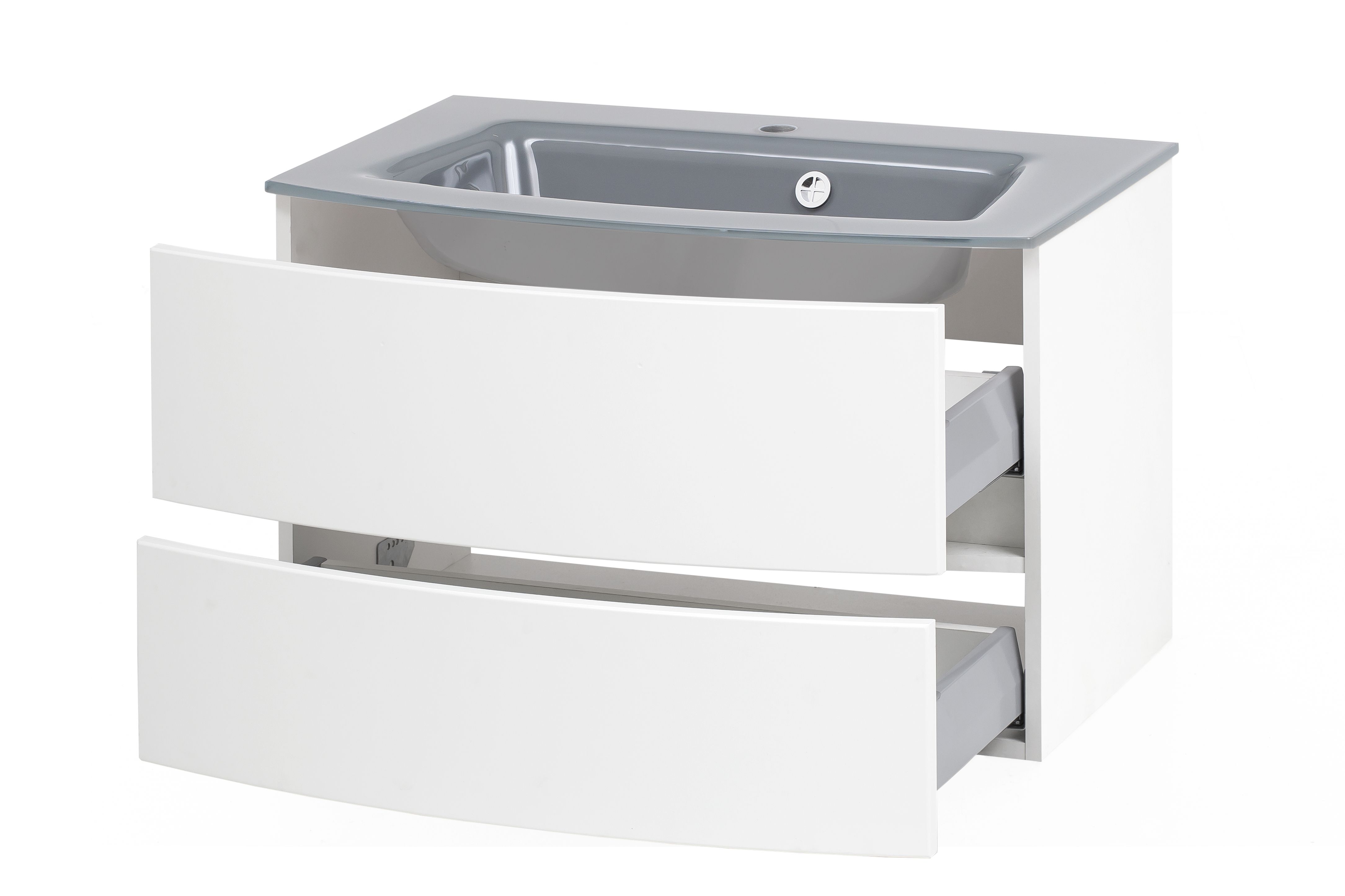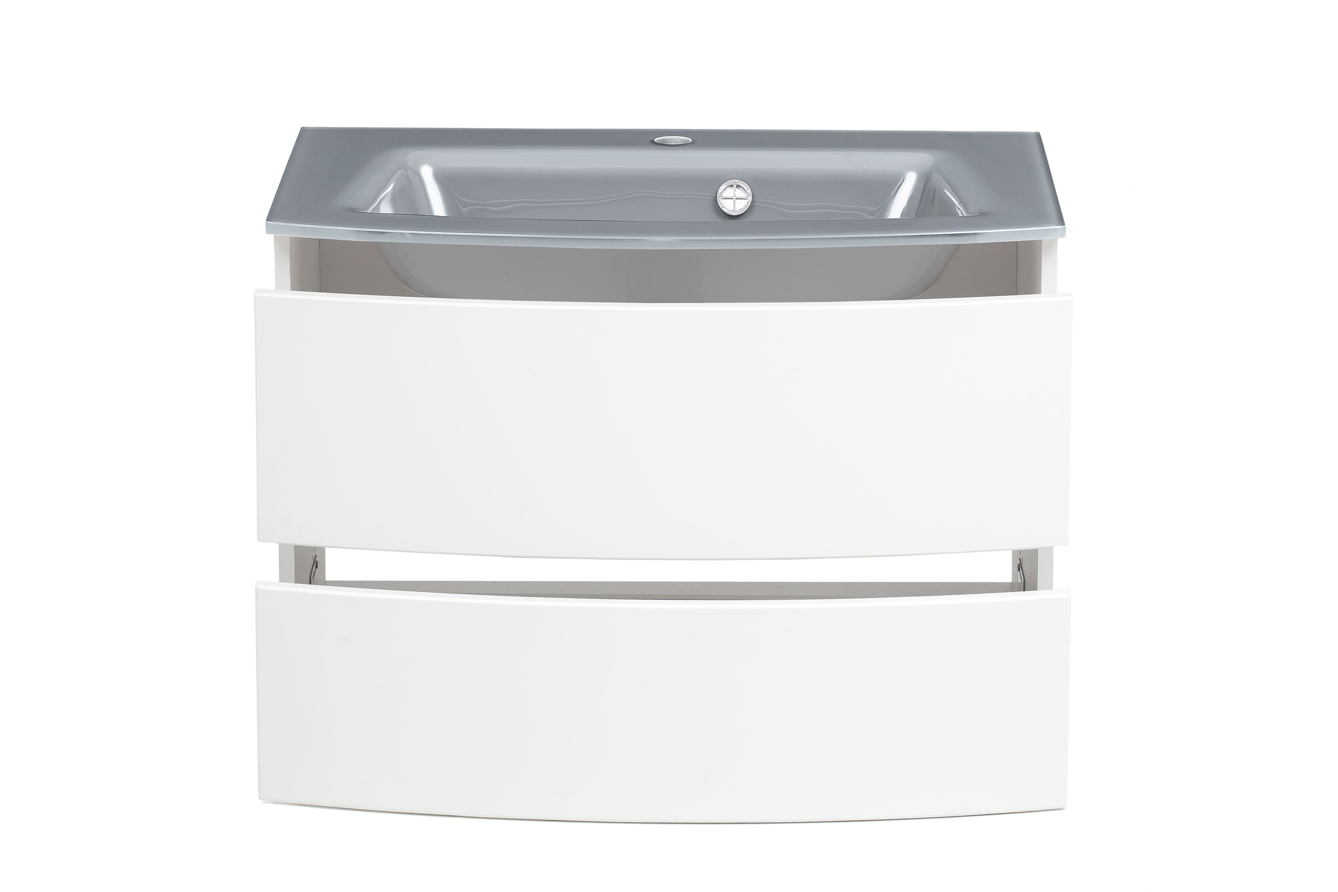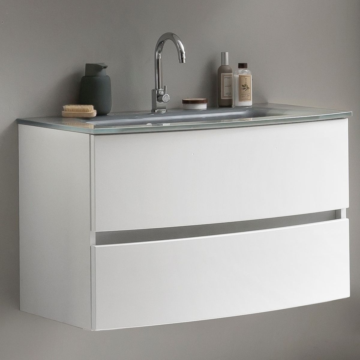 1 meuble sous vasque avec 2 tiroirs en métal à sortie totale avec fermeture amortie, façades arrondies