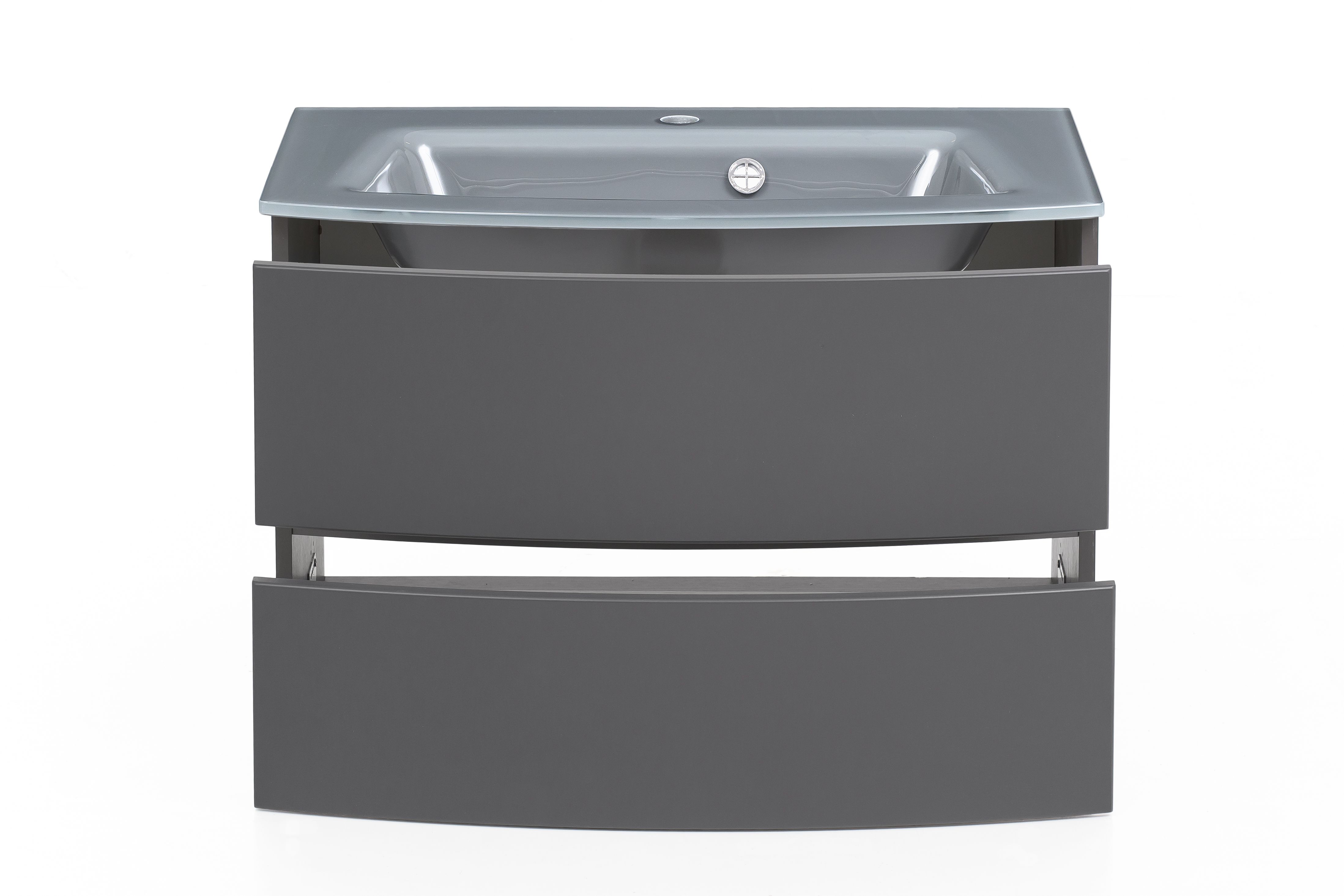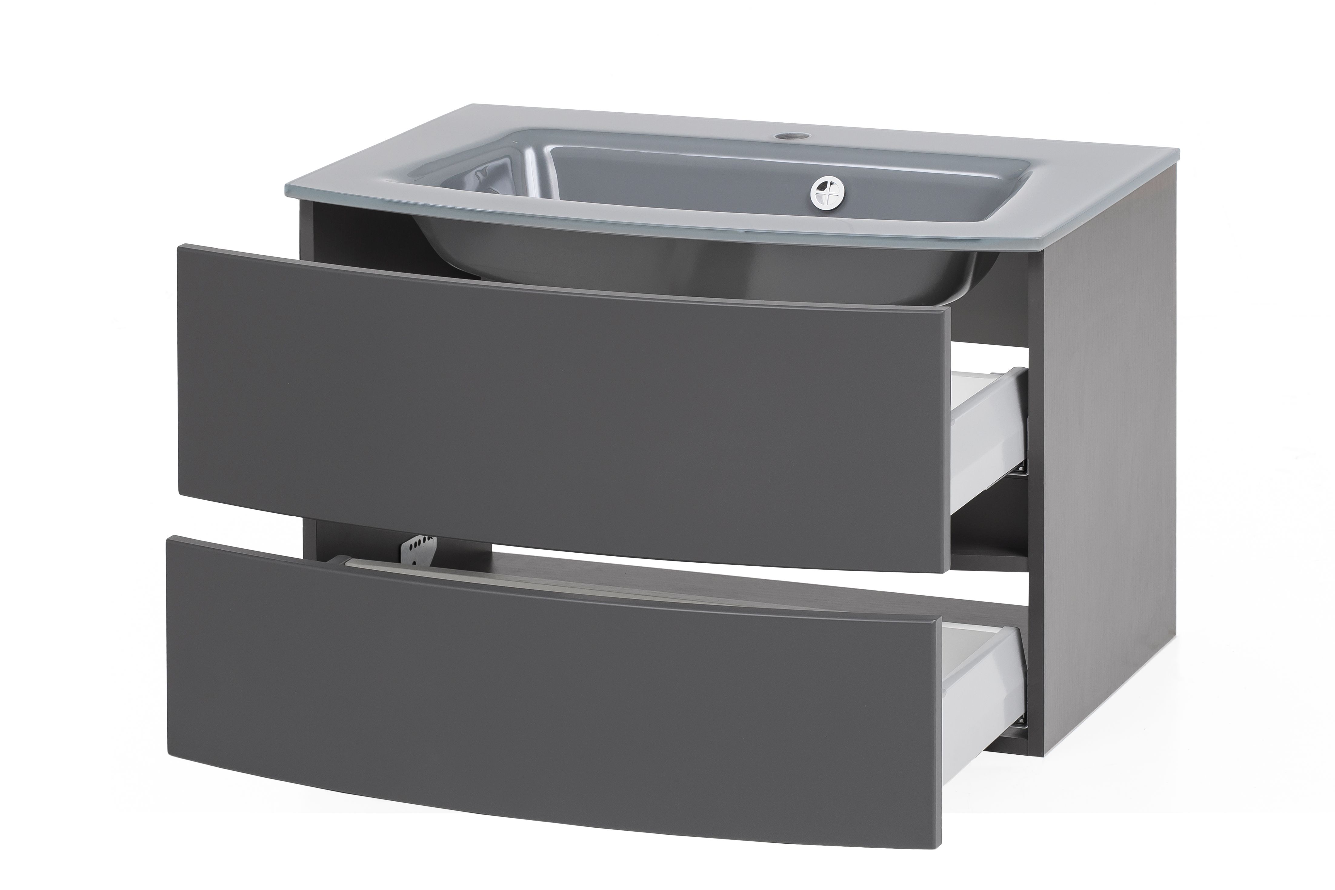 1 meuble sous vasque avec 2 tiroirs en métal à sortie totale avec fermeture amortie, façades arrondies