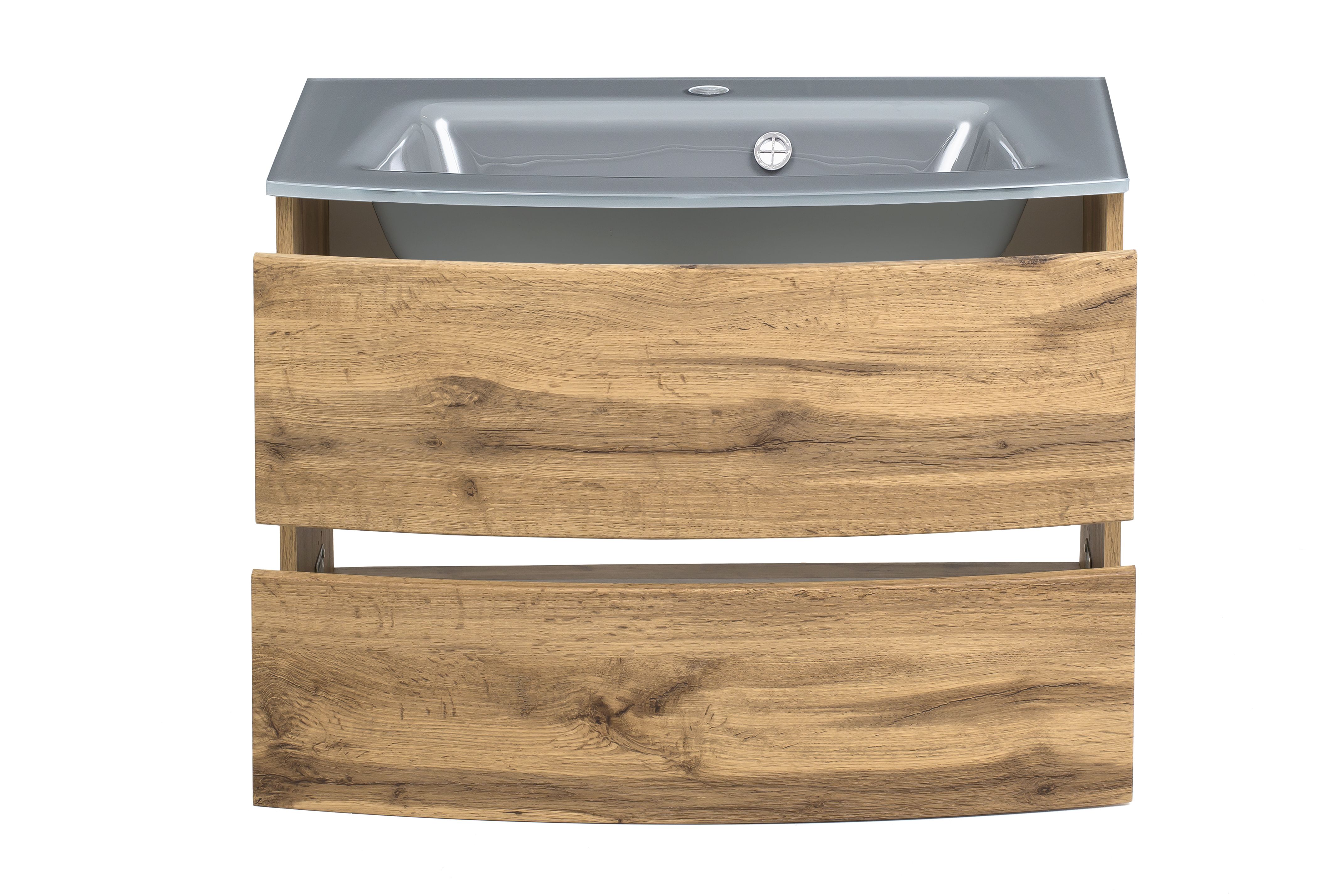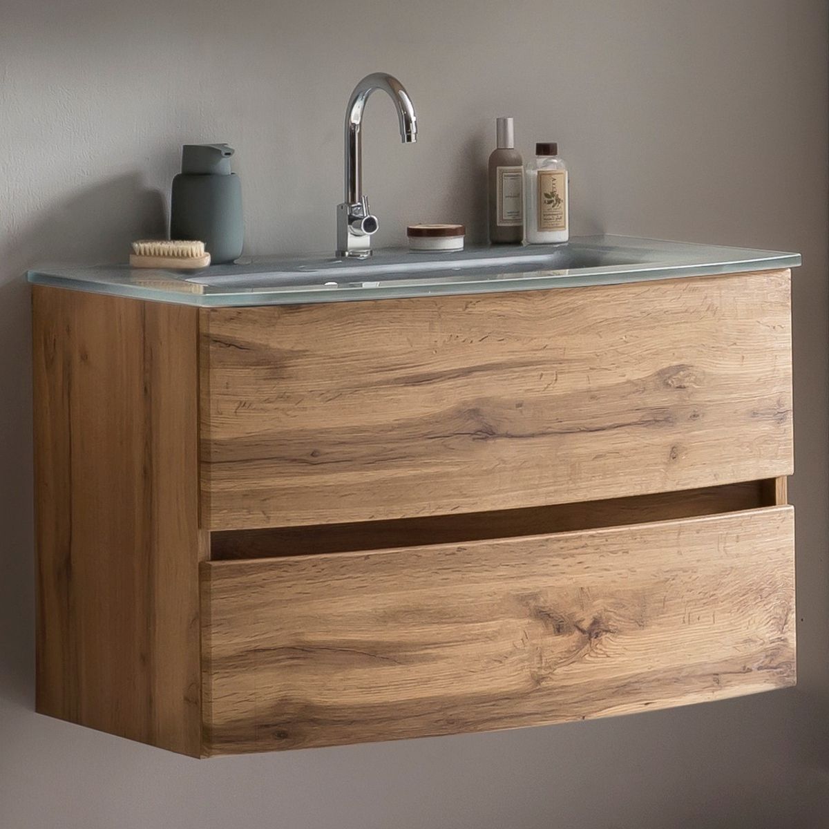 1 meuble sous vasque avec 2 tiroirs en métal à sortie totale avec fermeture amortie, façades arrondies