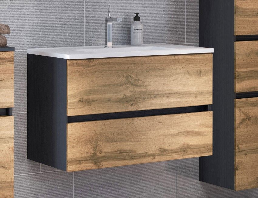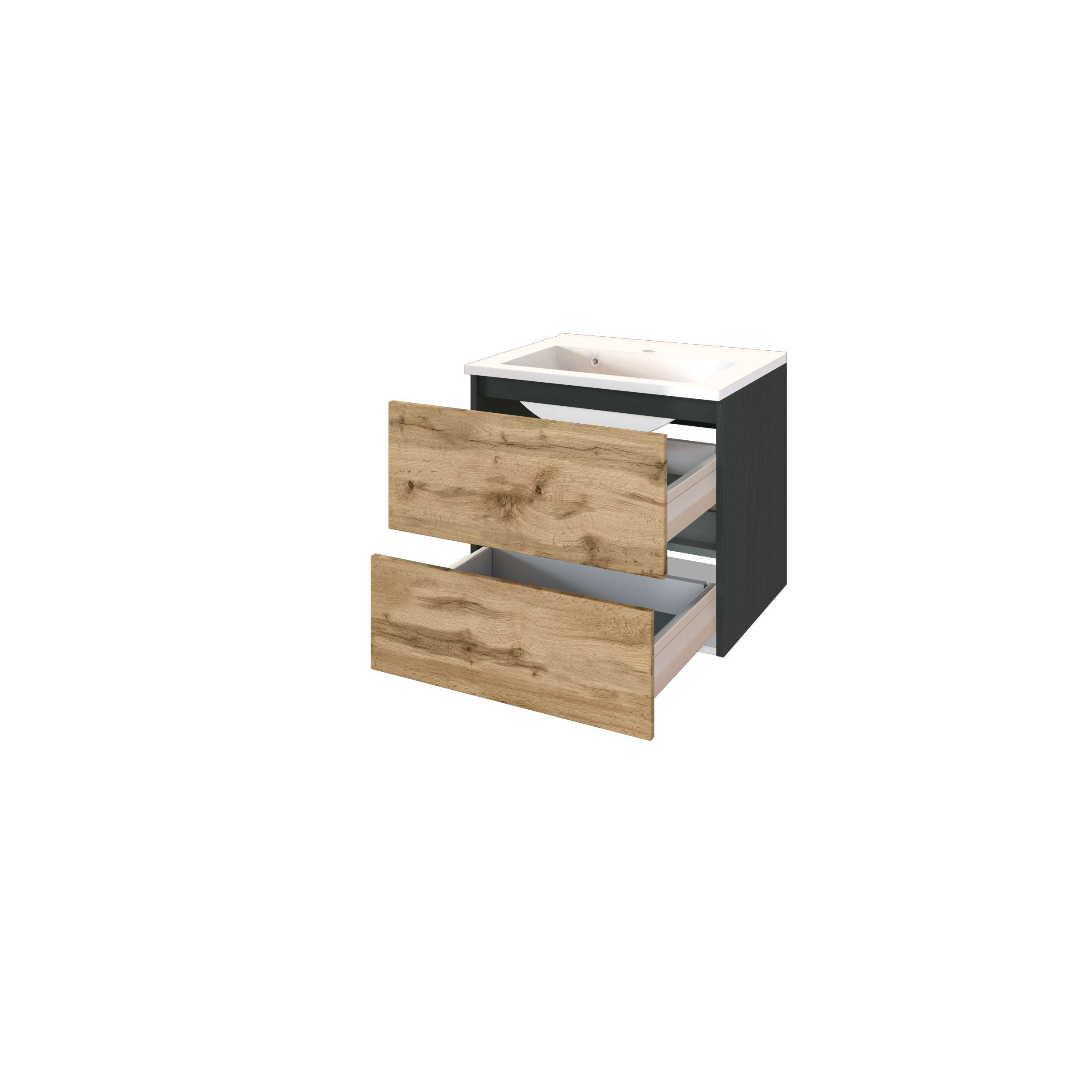 1 meuble sous vasque avec 2 tiroirs en métal avec fermeture amortie, sans poignées