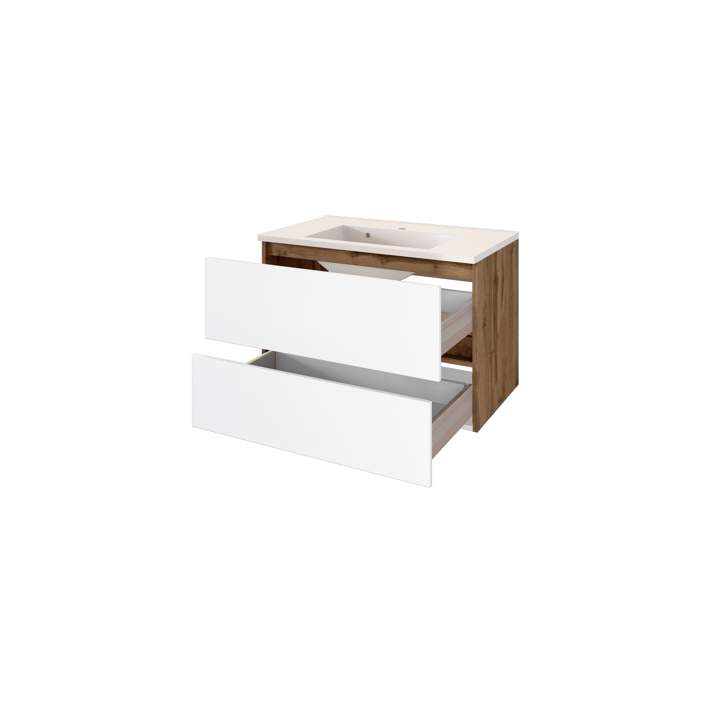 1 meuble sous vasque avec 2 tiroirs en métal avec fermeture amortie, sans poignées