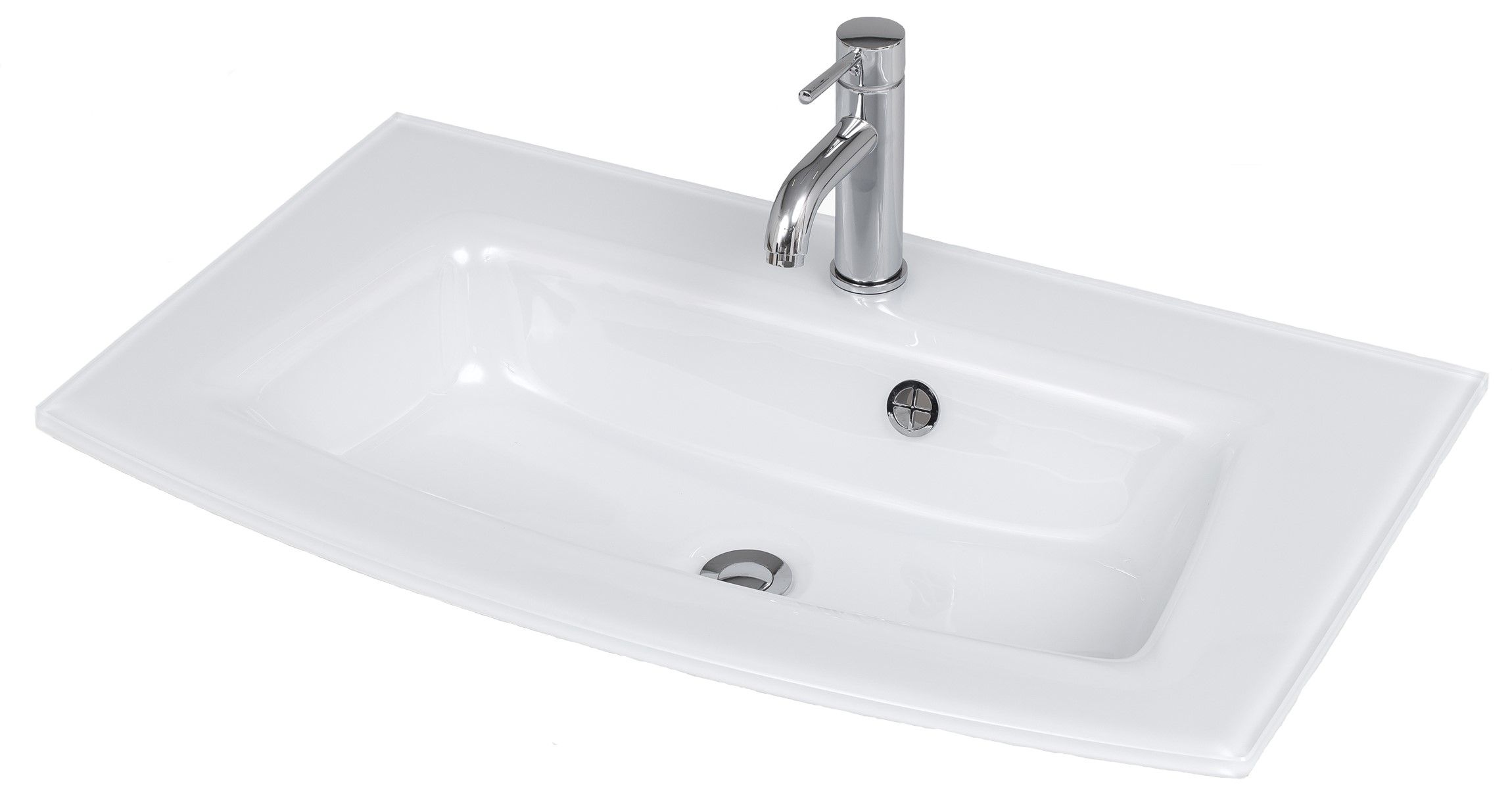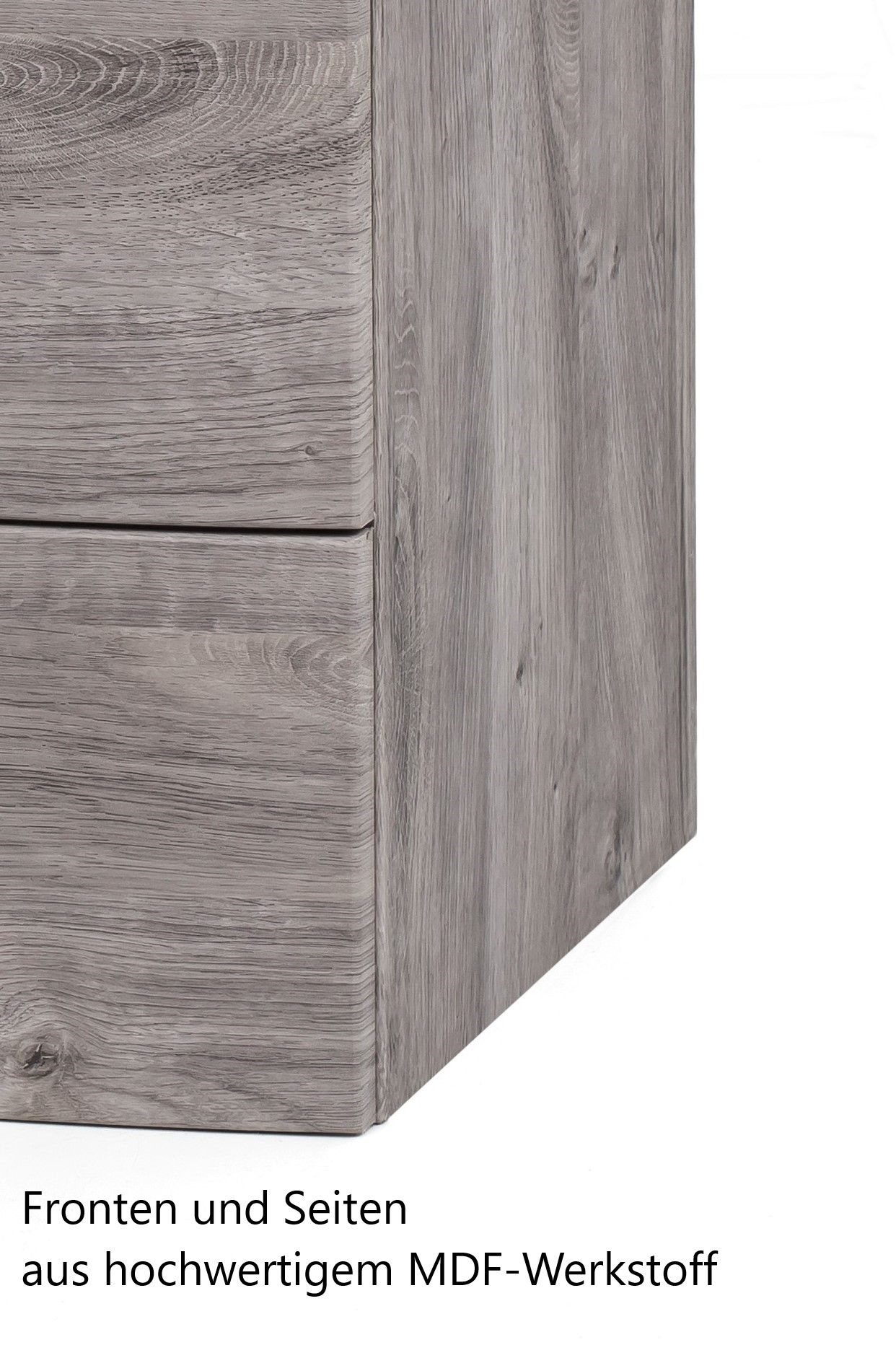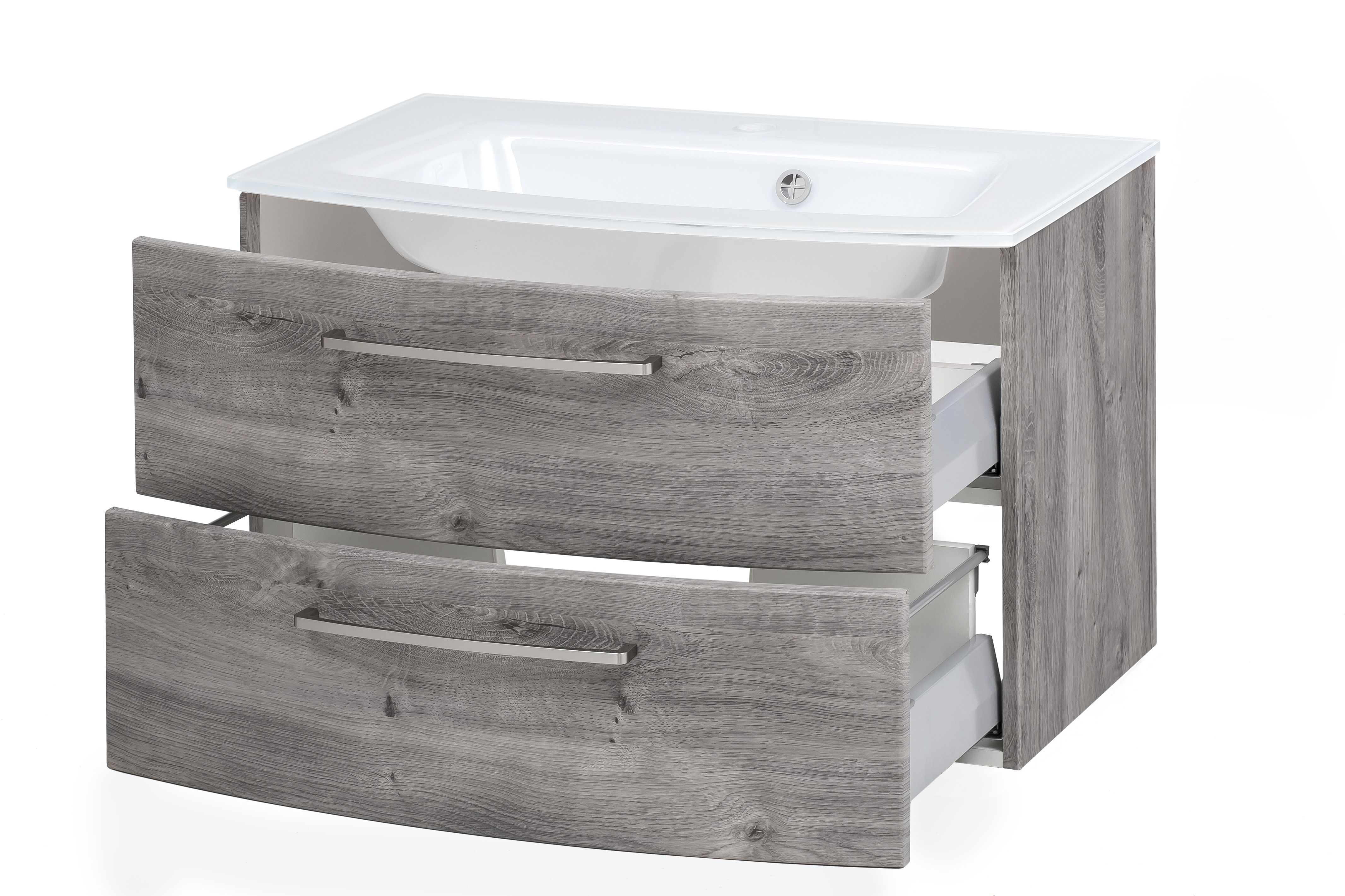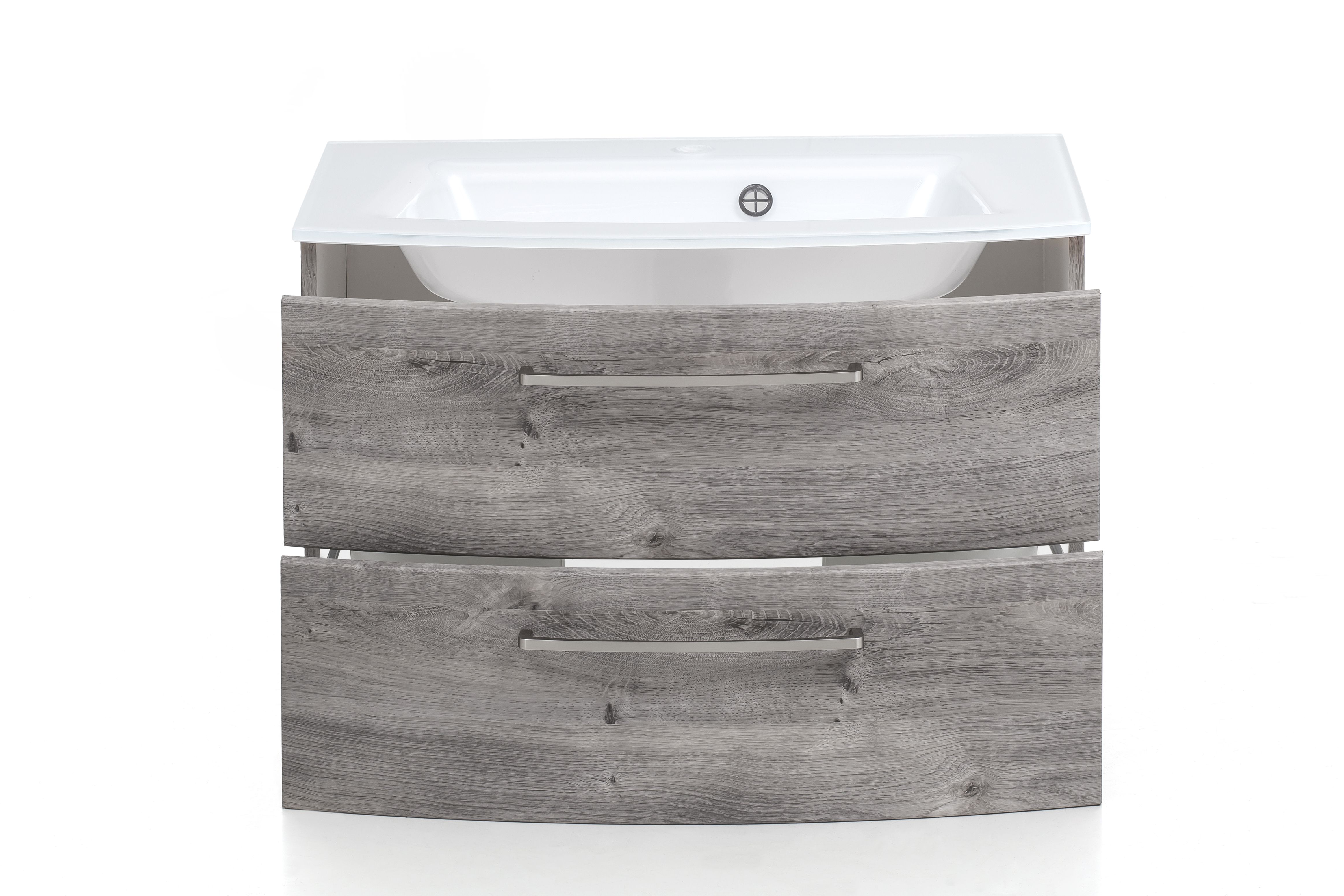 1 meuble sous vasque avec 2 tiroirs à fermeture amortie (à sortie totale), tiroir inférieur avec barres latérales, avec façades arrondies