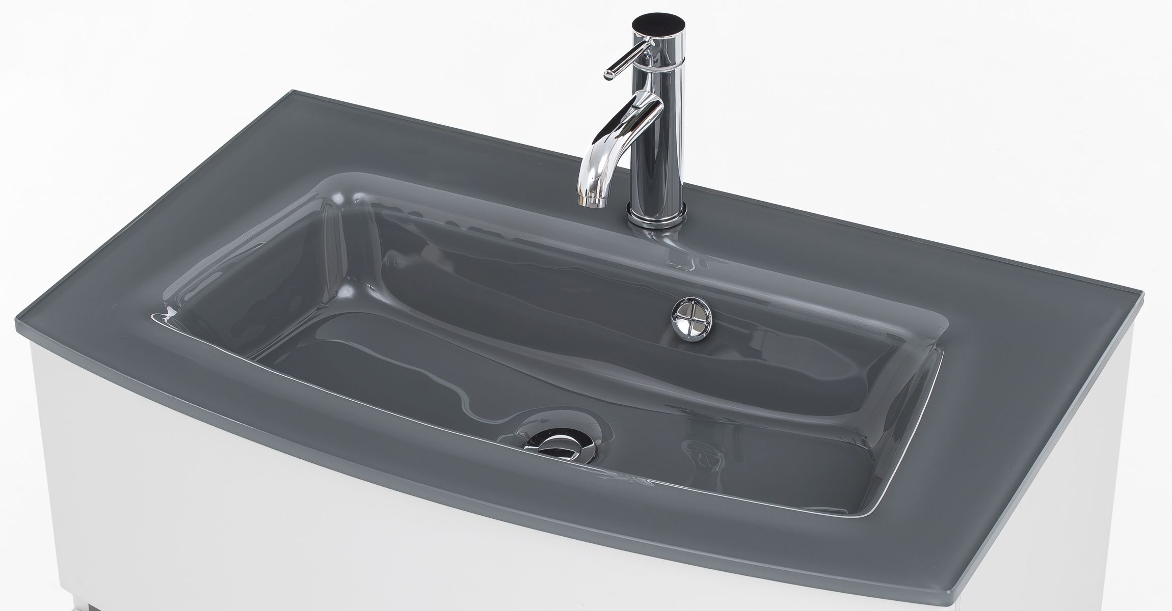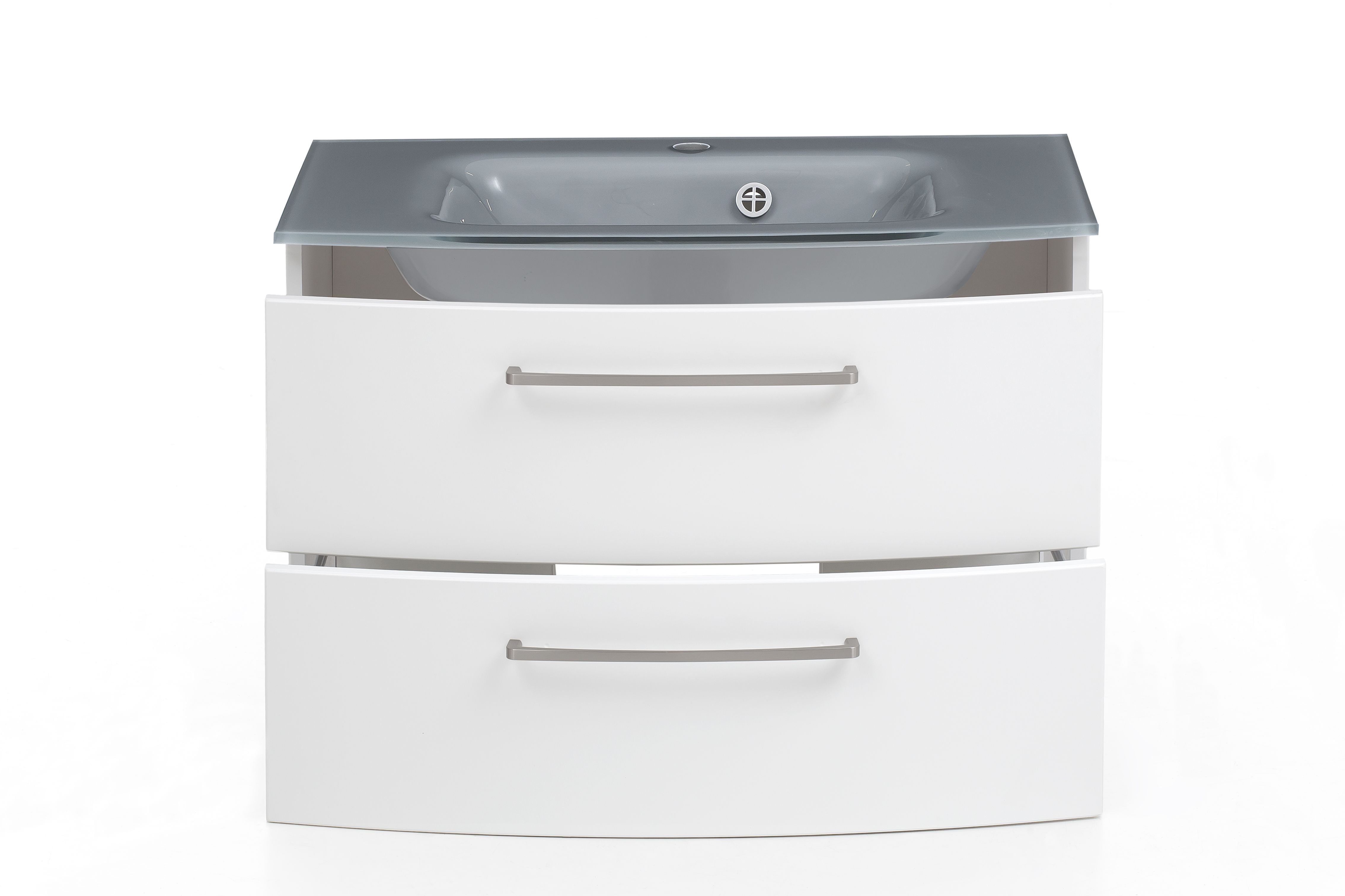 1 meuble sous vasque avec 2 tiroirs à fermeture amortie (à sortie totale), tiroir inférieur avec barres latérales, avec façades arrondies
