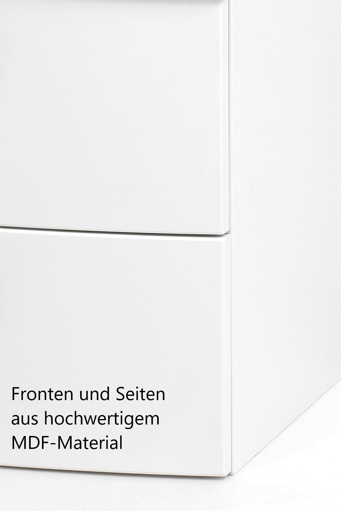 Façade et caisson : MDF (panneaux de fibres de bois de densité moyenne) ton blanc mat
