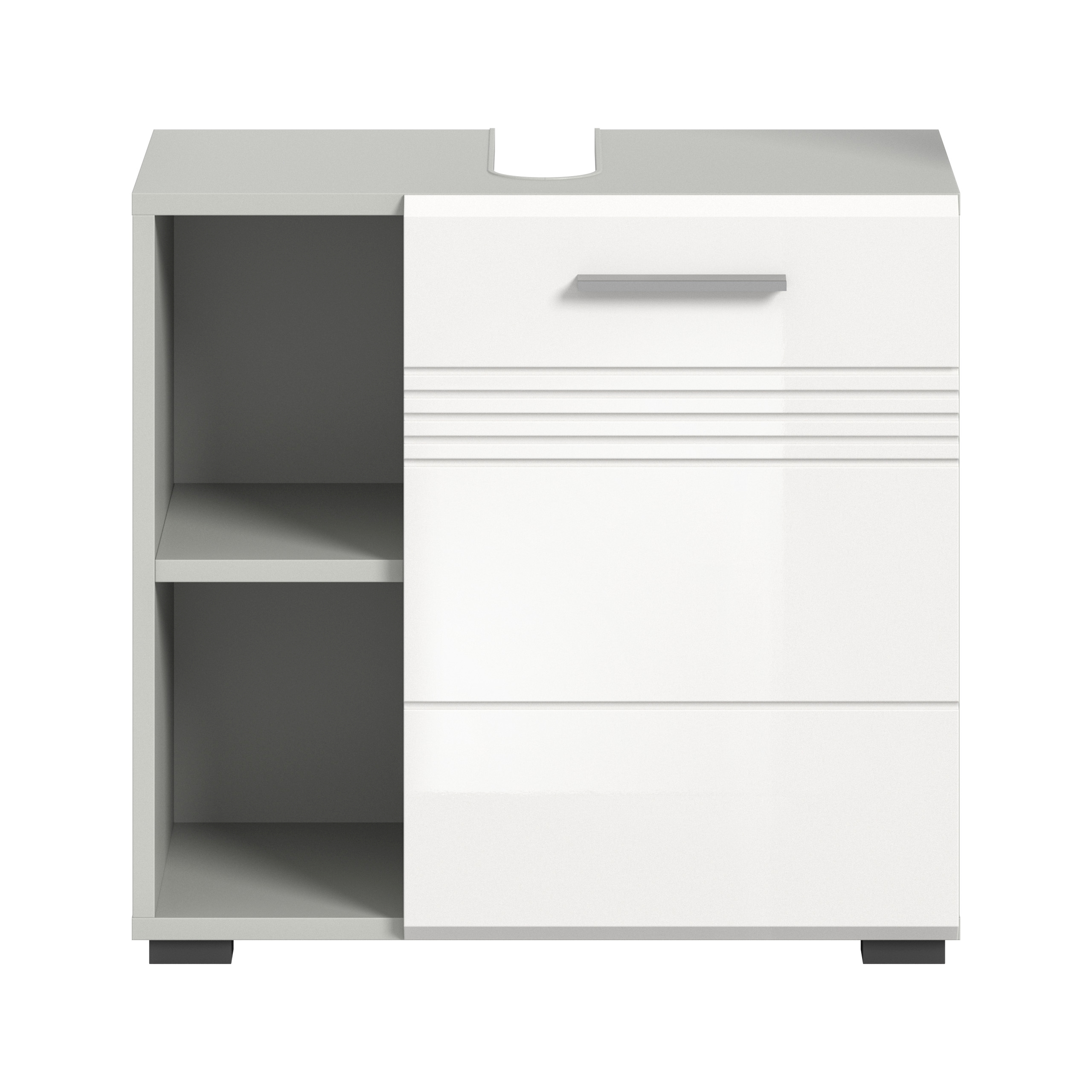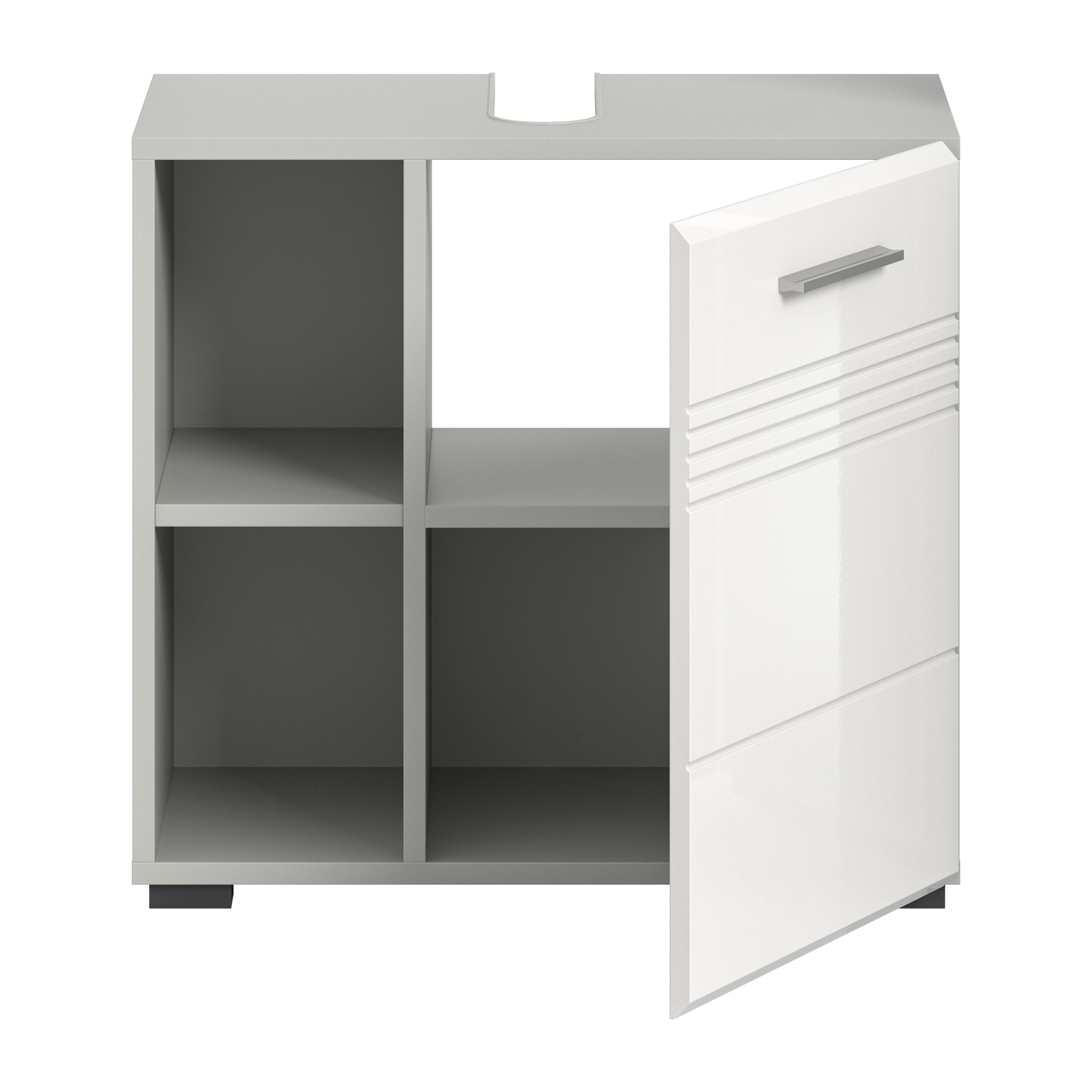 Découvrez notre meuble de salle de bains de qualité dans un élégant décor ton gris clair et ton blanc ultra brillant thermoformé à la finition étincelante. Grâce à ses dimensions (L/H/P: 60x56x32 cm), ce meuble n’offre pas seulement un bel espace de rangement : il conférera également à votre salle de bains une touche tendance. Ce meuble est la solution idéale pour associer style et fonctionnalité dans votre salle de bains.