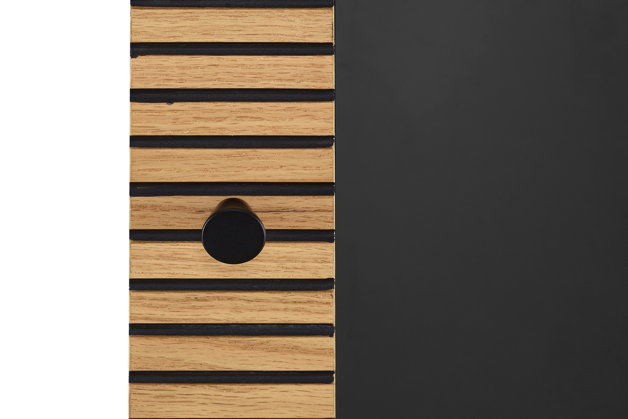 MDF (panneaux de fibres de bois de densité moyenne) décor chêne / placage sauvage véritable (Chine) / verre / ton noir