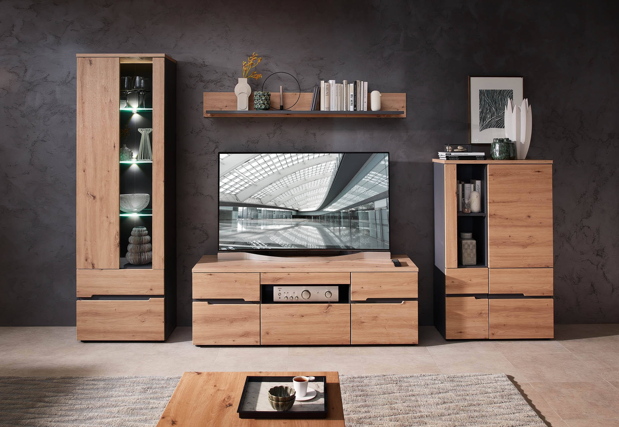 Caisson : ton graphite avec panneau supérieur décor chêne Artisan