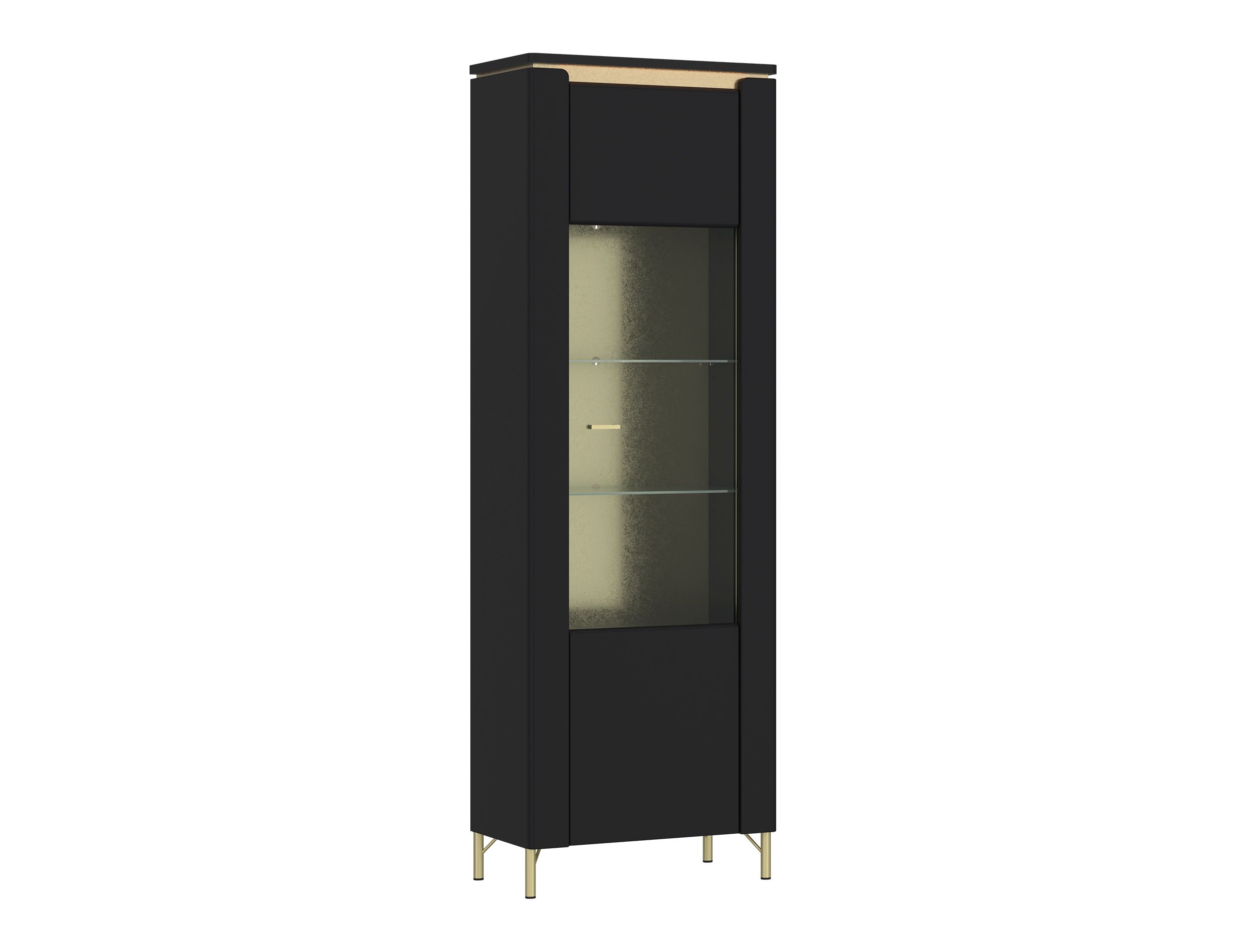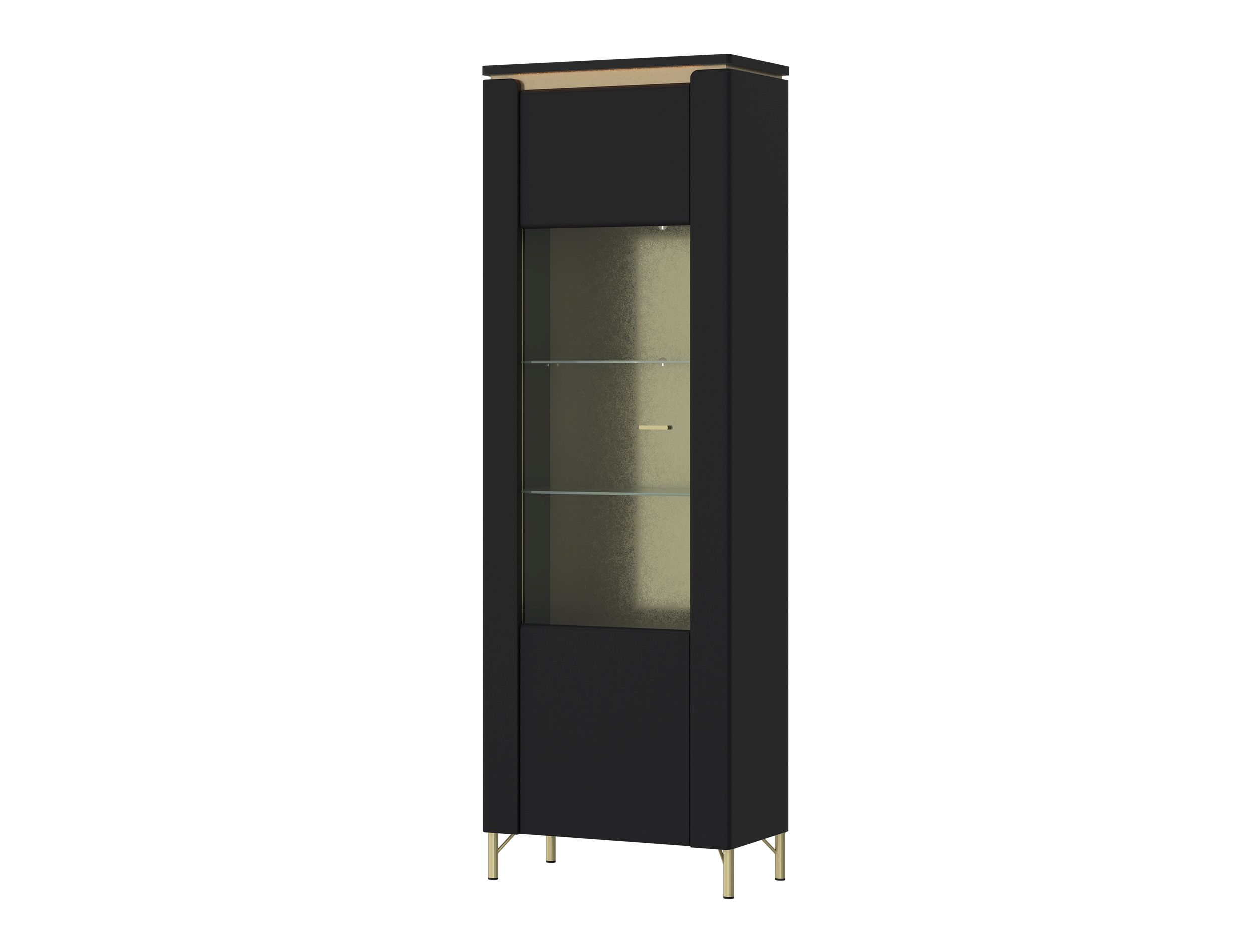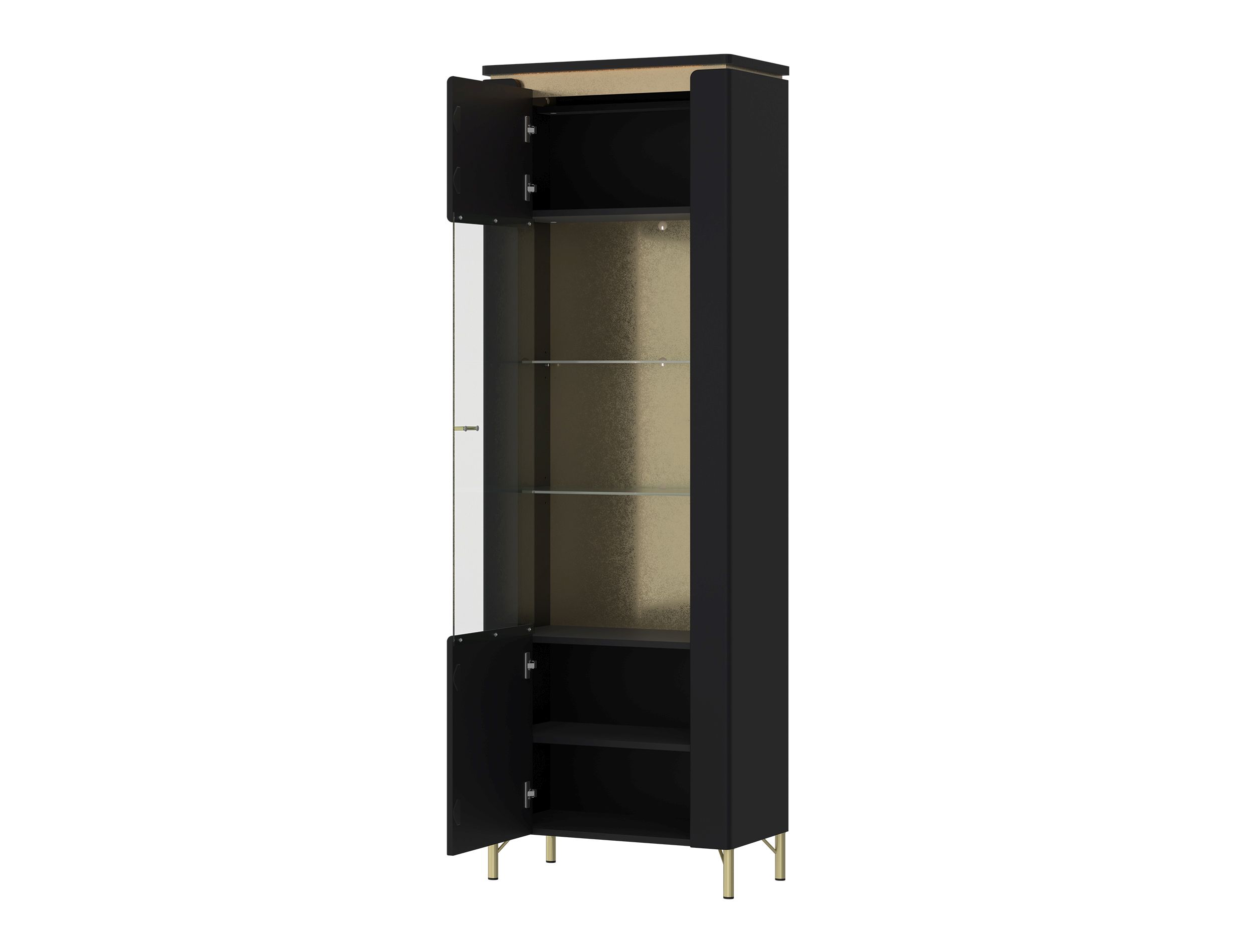 Caisson : ton noir et contrastes ton doré, plateau en MDF, panneau de particules surfacé mélaminé (PPSM)